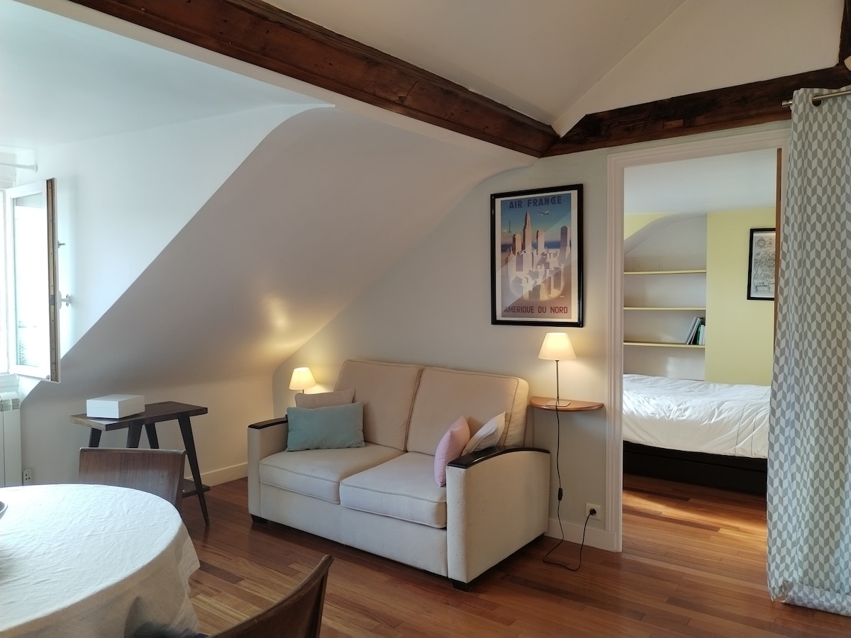 Căn gác rộng 506 ft vuông rất đẹp nằm dọc theo một lối đi lát đá cuội với một sân thượng nhỏ và tránh xa những con phố Paris ồn ào. Khu vực lân cận có rất nhiều nhà hàng (bao gồm cả ẩm thực Pháp). Chúng tôi có một chỗ đỗ xe có thể sử dụng bằng thẻ quẹt (giá: 30 euro/ngày). Tuyến tàu điện ngầm: 9 và xe buýt cách đó hai phút (76.56.46,61)