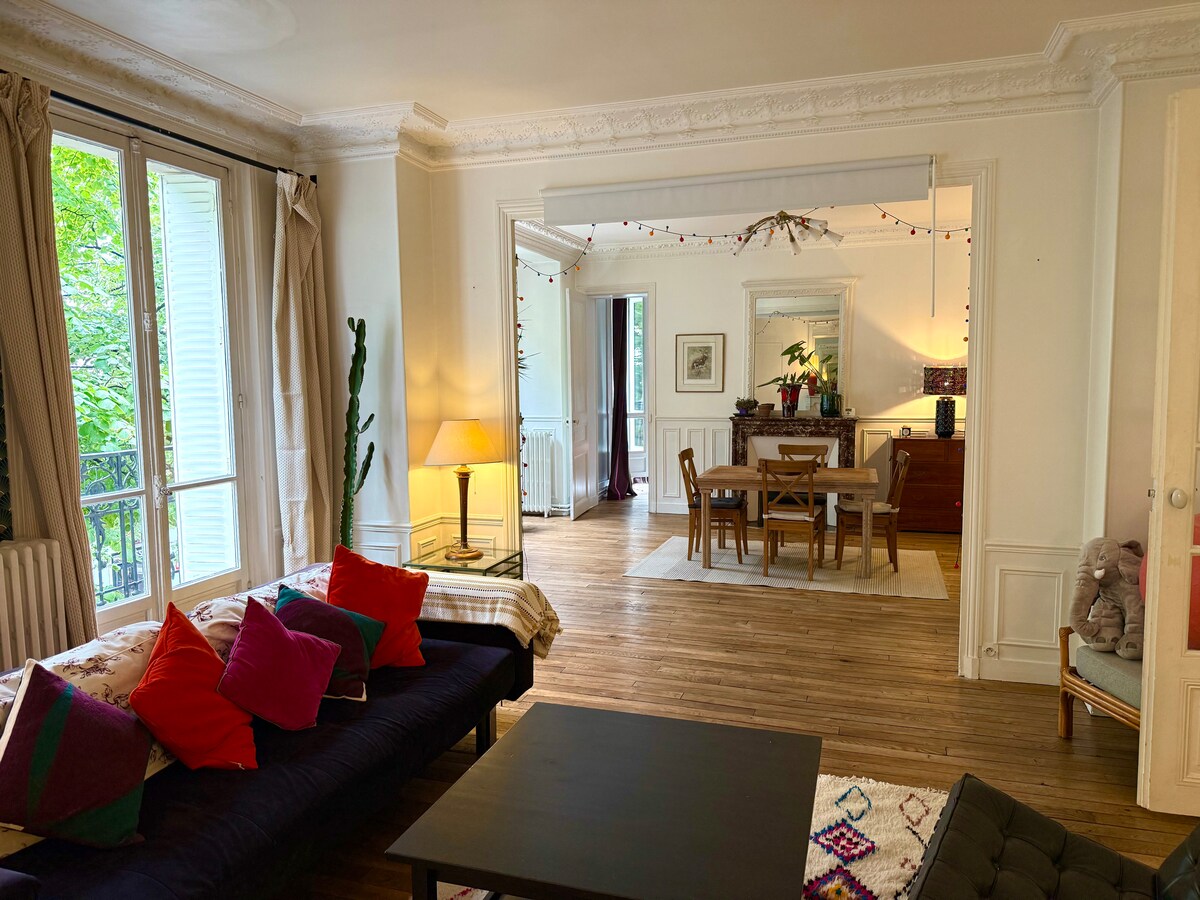 Hãy quên đi những lo lắng của bạn trong không gian rộng rãi, thanh bình này. Căn hộ của chúng tôi, nằm cách nhà thờ Alésia vài mét và gần Công viên Montsouris, nằm trong một khu vực yên tĩnh ấm áp, với tất cả các cửa hàng gần đó (siêu thị, rạp chiếu phim, nhà thuốc, nhà thuốc, nhà hàng...). Căn hộ 110 m2 có ban công có phòng ngủ chính đẹp, phòng khách đôi lớn, phòng ngủ trẻ em (có giường tầng), phòng tắm lớn và bếp được trang bị.