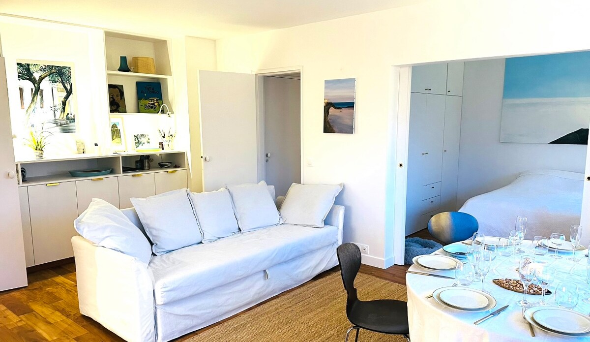 Hai phòng quyến rũ, bao gồm một phòng khách với một nhà bếp mở, một phòng ngủ và một phòng tắm. Được trang trí bằng tình yêu, đó là một hòn đảo yên tĩnh. Cửa sổ mở ra sân trong nhiều cây cối và mái nhà kiểu Paris. Tiếng ồn duy nhất bạn nghe thấy sẽ là tiếng chim hót líu lo. Bộ đồ giường rất thoải mái và căn hộ có tất cả các tiện nghi: máy pha cà phê, dụng cụ nấu ăn, máy giặt, lò nướng, tủ đông, máy chiếu, wifi... Tuyệt vời cho ngày lễ hoặc công việc từ xa.