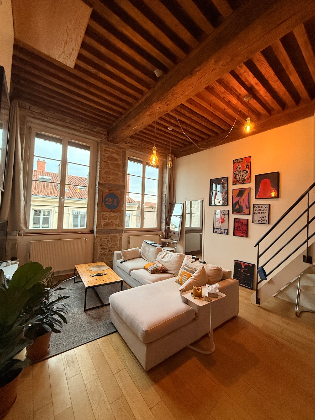 Căn hộ (45m²+ sân hiên riêng) nằm bên bờ sông Saône, cách quận Lyon cổ lịch sử 5 phút đi bộ. Nằm ở tầng 1 (không có thang máy), sườn đồi của một tòa nhà cũ bên bờ sông Saône, hành lang tòa nhà hơi mộc mạc (thế kỷ 17). Căn hộ đã được thiết kế lại hoàn toàn, giữ nguyên tính xác thực của nó. Tôi đã biến nó thành nơi trú ẩn của mình, tránh xa sự hối hả và nhộn nhịp của Lyon. Tuy nhiên, chỗ ở này không phải ai cũng thích😊. Sau này tôi mô tả những ưu và nhược điểm.