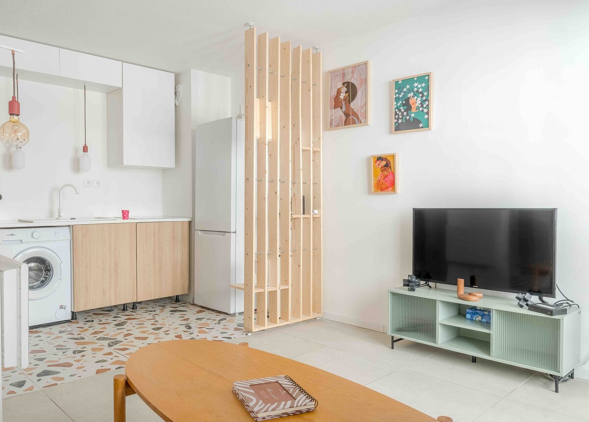 Ce logement parfaitement situé offre un accès facile à tous les sites et commodités. Ce studio est entièrement rénové dans une ambiance cocooning . commerces à proximité. Situé près du métro et des bus . Proche centre ville à pied . Dans un immeuble calme . Au 5ème étage avec ascenseur . Vue dégagée depuis une terrasse de 4 m2 . Idéal pour un couple . Avec sa cuisine équipée, vous pourrez prendre vos petits déjeuners ou repas sur place . Parfait pour visiter Marseille en quelques jours .