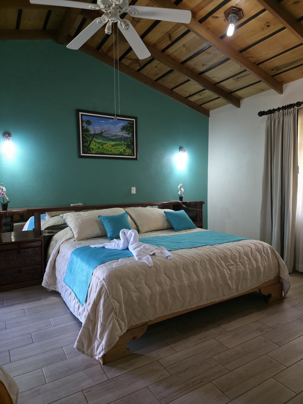 Ubicado en una de las mejores zonas de la región, nuestro apartamento ofrece impresionantes vistas a la montaña y atardeceres inolvidables. Sumérgete en la tranquilidad de la naturaleza y déjate envolver por la magia de este espacio lleno de arte, paz y amor. Cada mañana despierta con el aroma del café de nuestra finca y disfruta de un delicioso desayuno en la terraza, mientras contemplas el paisaje. Nos encontramos a pocos minutos de los principales atractivos turísticos de Monteverde