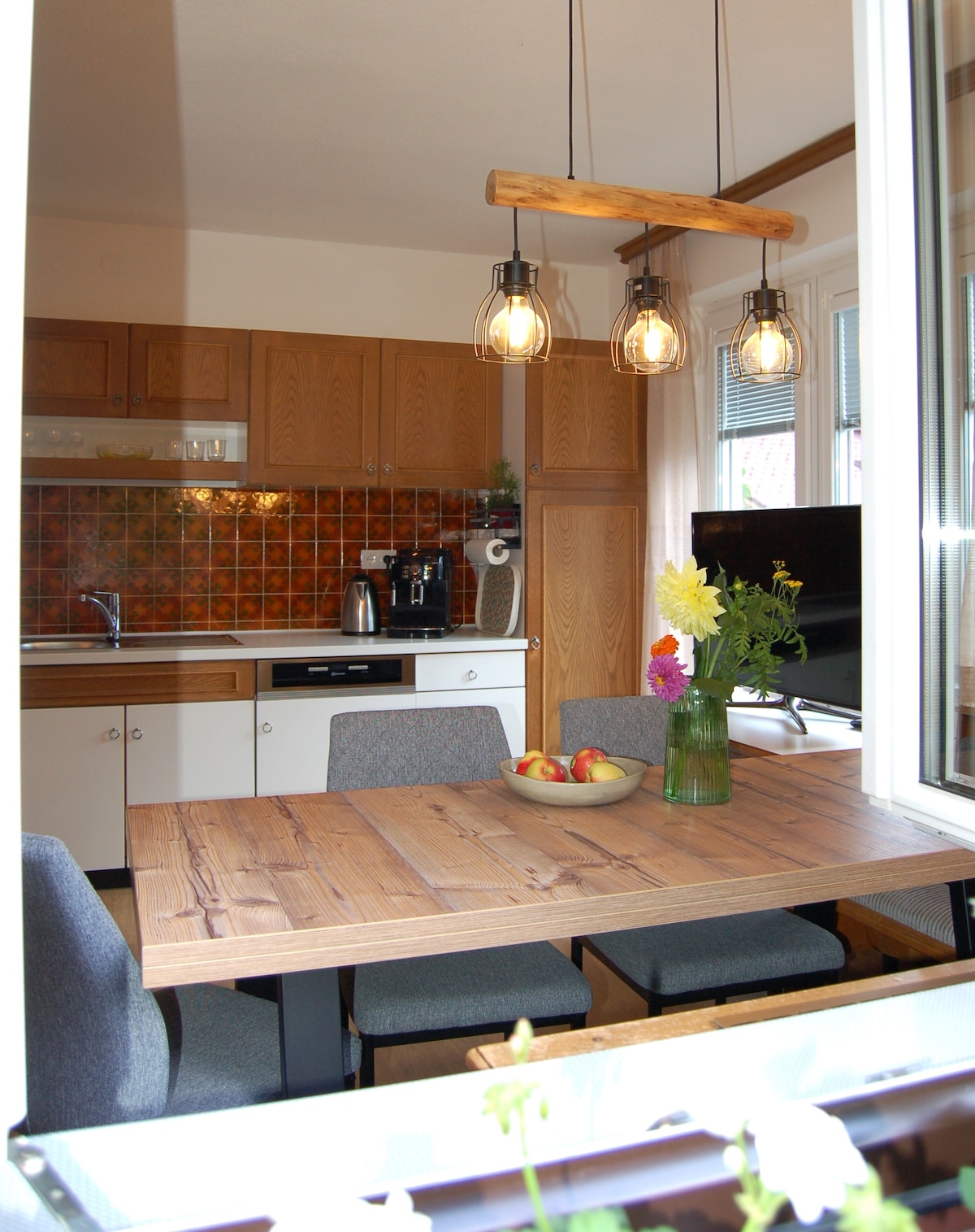 Căn hộ của chúng tôi là một vị trí bình dị, yên bình trên một sườn dốc hướng về phía nam và có sân thượng rộng 40m² với tầm nhìn 180° độc đáo ra toàn bộ dãy núi Tennengebirge và thung lũng Lammertal. Không gian sống giống như gác xép tràn ngập ánh sáng mặt trời và mang bức tranh toàn cảnh núi non độc đáo đến tận cùng. Căn hộ, chỉ được xây dựng vào năm 2020, ấm áp thoải mái vào mùa đông (hệ thống sưởi dưới sàn) và mát mẻ dễ chịu vào mùa hè. Bàn làm việc và máy pha cà phê hoàn toàn tự động có sẵn.