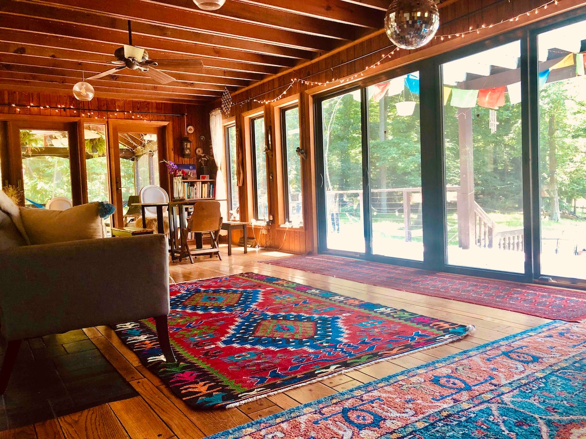 Easily escape to the woods on a 14 acre homestead that's only 20 miles from DC. Surrounded by the forest with amazing views, designed by artists, this secluded hideaway is a celebration of Nature and Art. Recharge amongst these ancient trees and all the singing critters that soundtrack the night. Enjoy a fire, frolic in the fields, read on a hammock, strum a guitar, and feel the pressure of modern life melt away. Explore the many bucolic trails nearby. Perfect for retreats and workshops.
