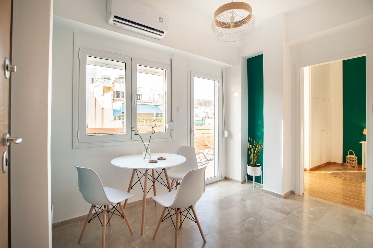 Căn hộ Groovy, một căn hộ mới được cải tạo trong thiết kế tối giản, nằm ở trung tâm Athens, chỉ cách ga tàu điện ngầm Panepistimio 5 phút đi bộ. Điểm nổi bật của nó là tầm nhìn ra Acropolis từ phòng khách, phòng ăn và phòng ngủ chính, nơi khách có cảm giác gần như chạm vào đền Parthenon. Căn hộ này lý tưởng cho gia đình và bạn bè trong kỳ nghỉ ở Athens.