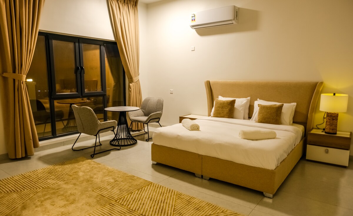 Enjoy comfort and privacy. Misfat al-Abriyeen The spacious interior features a spacious living room, a master bedroom, and an elegant coffee corner. Air conditioning ensures a refreshing atmosphere, and a bathroom and bathtub provide maximum comfort.