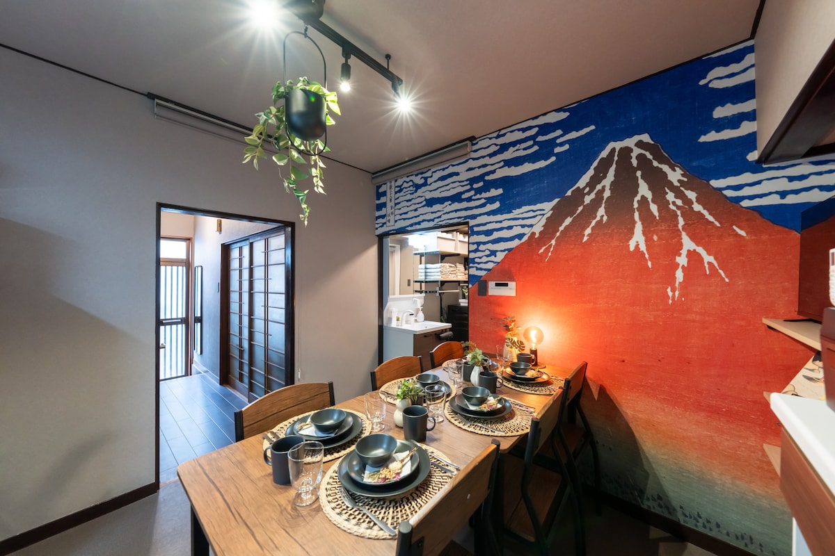 Chỉ cách nhà ga 2 phút đi bộ, Palette House là một nơi nghỉ dưỡng ấm cúng và phong cách hoàn hảo để khám phá Tokyo. Bếp theo phong cách công nghiệp bao gồm một quầy bar trên đảo, dụng cụ nấu ăn đầy đủ, ly rượu vang và một bình nước - lý tưởng để nấu ăn và đồ uống buổi tối. Phòng khách có lối trang trí bằng gỗ trôi tự nhiên và ghế sofa thoải mái, trong khi phòng ngủ hiện đại của Nhật Bản mang đến một không gian thư giãn tinh tế. Với tiện nghi chu đáo và thiết kế ấm áp, đó là một cơ sở hoàn hảo cho các cặp đôi và gia đình.