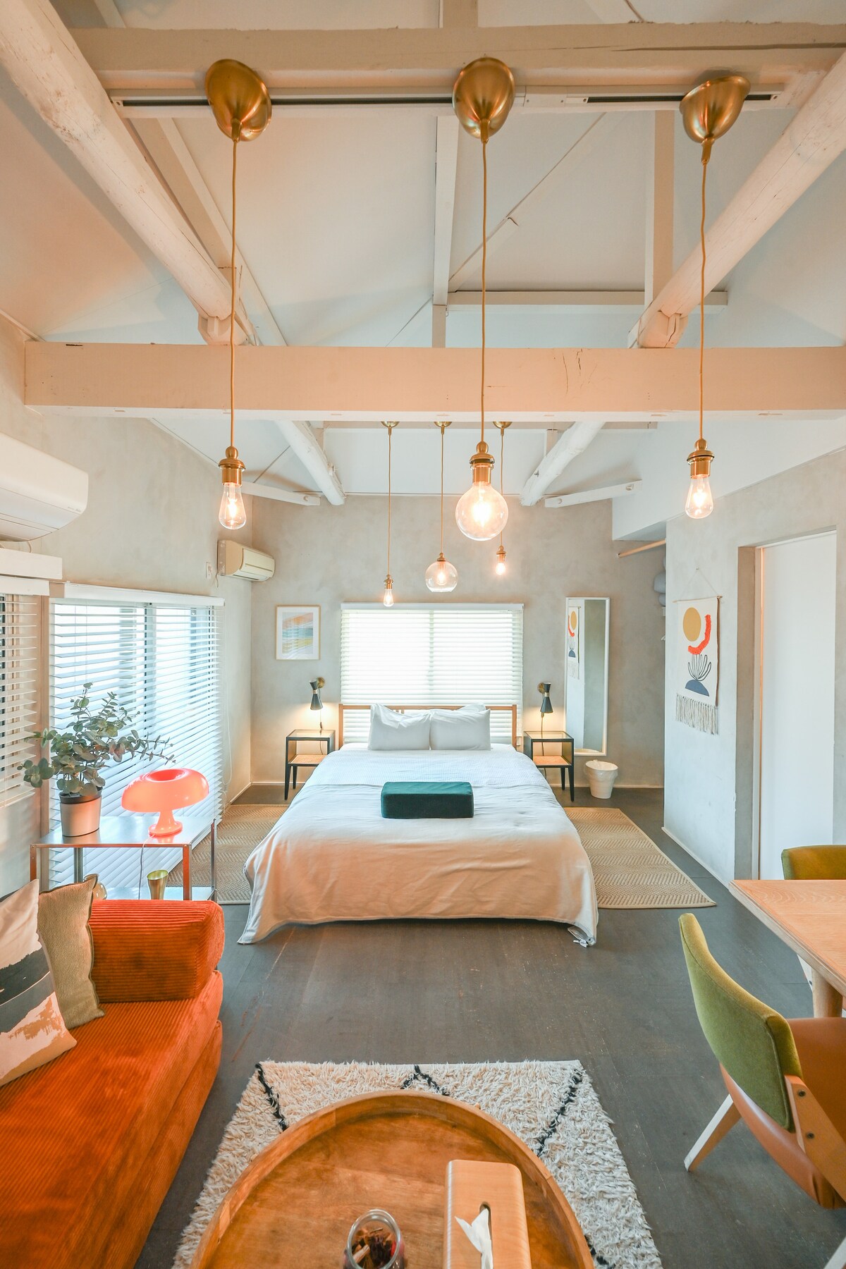 Tìm cảm hứng trong một nơi ẩn náu yên tĩnh- nơi sự tiện lợi của thành phố gặp gỡ sự thoải mái yên tĩnh, sự hài hòa giữa hiện đại và truyền thống. Obi trân trọng bởi gia đình tôi được tái sử dụng như một tấm thảm, Noren(cartain) được nhuộm bởi bà tôi, một nghệ sĩ nhuộm Bingata, Shakyo (thư pháp) được thiết lập cho những khoảnh khắc chánh niệm- Cảm nhận vẻ đẹp của truyền thống Nhật Bản. Nghỉ ngơi sâu với dầu gội đầu hữu cơ thân thiện với môi trường, dầu thơm chất lượng cao, và một chiếc giường được làm từ gỗ bách Nhật Bản thơm ngát. Kỳ nghỉ tại Tokyo của bạn đang chờ đón bạn.
