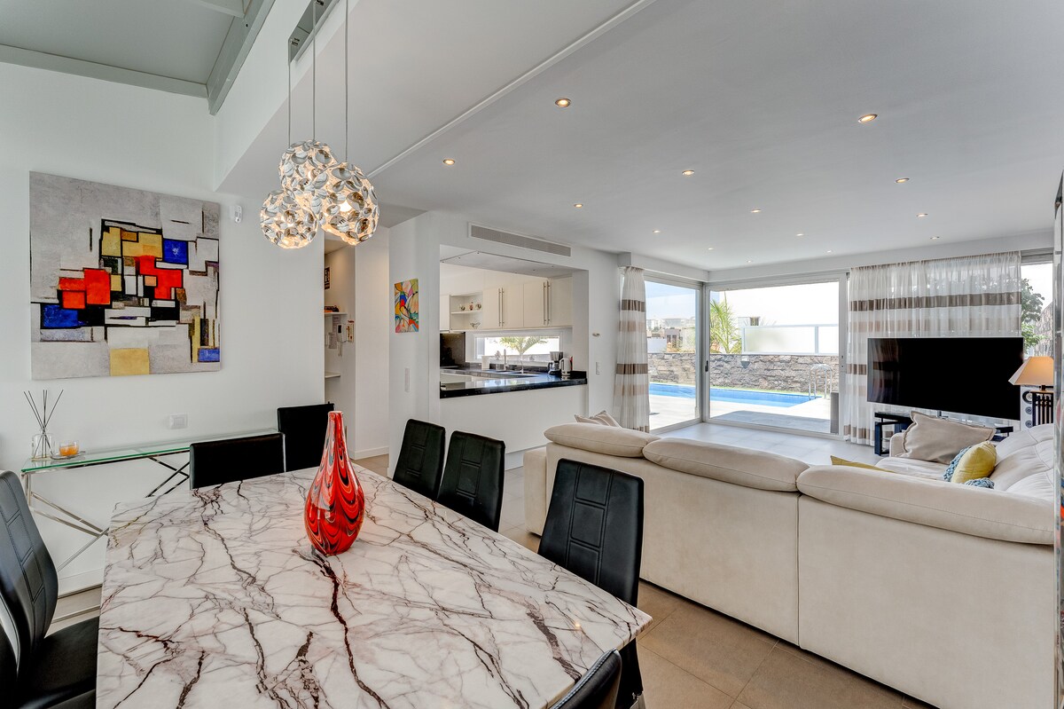 Nhà theo phong cách Canarian với tầm nhìn ra biển, sân thượng và hồ bơi