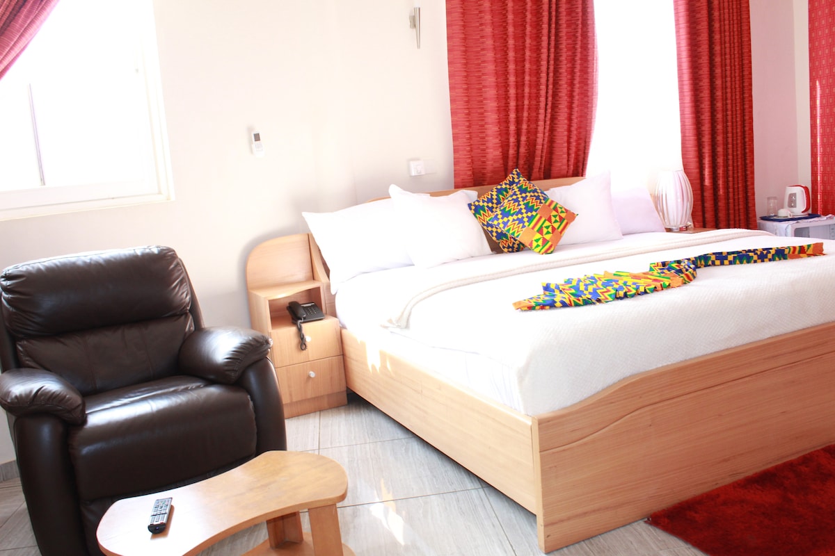 Một chỗ ở kiểu boutique uy tín cách Sân bay quốc tế Kotoka và thị trấn East-Legon không xa. 16 phòng có phòng tắm khép kín đầy đủ tiện nghi và các tính năng khác: - Truy cập Wi-fi - TV màn hình phẳng - Tủ quần áo đầy đủ tiện nghi - Phòng khách - Phòng có điều hòa nhiệt độ trong suốt - Tủ lạnh trong mỗi phòng. - Bộ máy phát điện. - Vườn cảnh quan