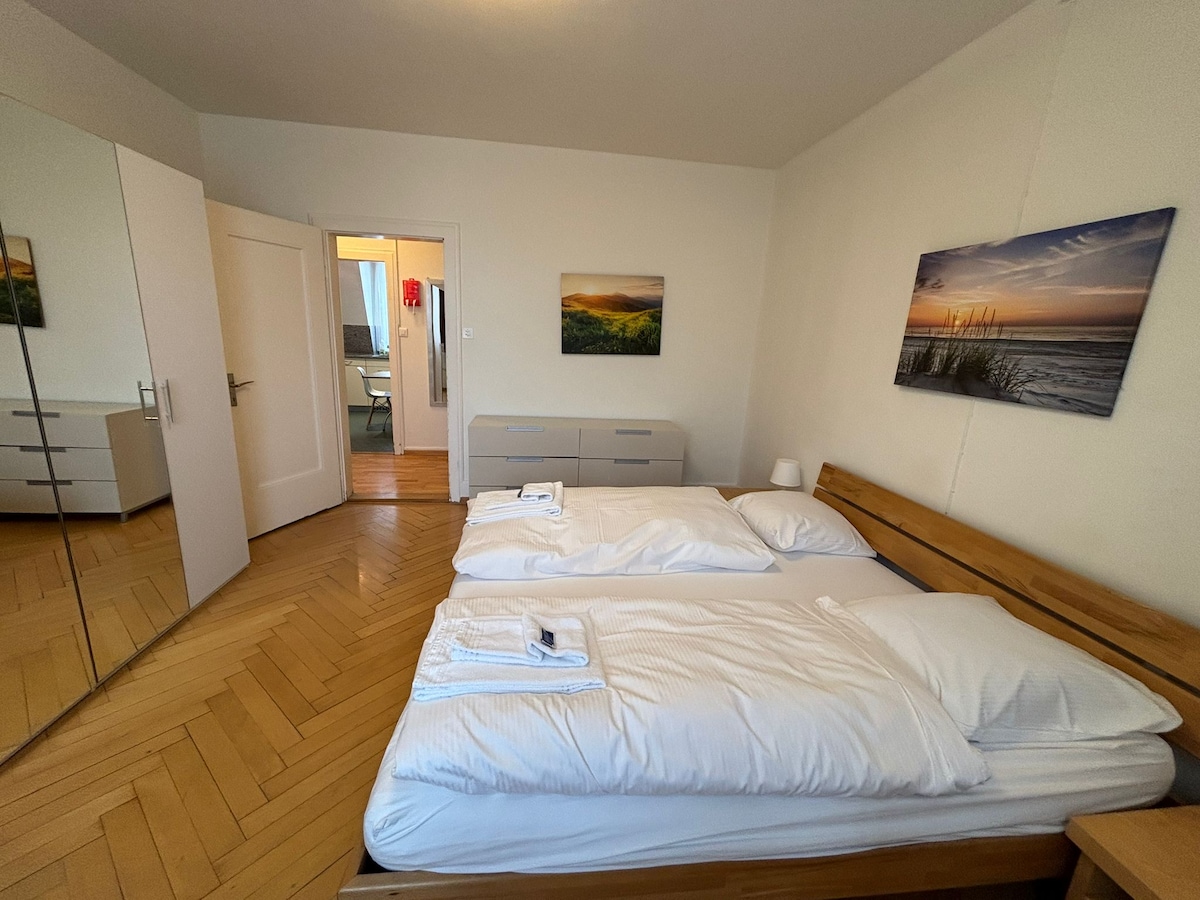 Chào mừng bạn đến với căn hộ được trang bị đầy phong cách của chúng tôi với tầm nhìn ngoạn mục ra Hồ Zurich! Chỗ ở rộng rãi này mang đến sự kết hợp lý tưởng giữa sự thoải mái, thiết kế và vị trí trung tâm – hoàn hảo cho một kỳ nghỉ thư giãn tại Zurich. 2 phòng ngủ thoải mái với giường lò xo hộp đảm bảo một giấc ngủ ngon, trong khi cửa sổ cũng cho tầm nhìn ra hồ. Bạn có thể đến trung tâm thành phố Zurich chỉ trong 8 - 10 phút bằng ô tô hoặc phương tiện giao thông công cộng.