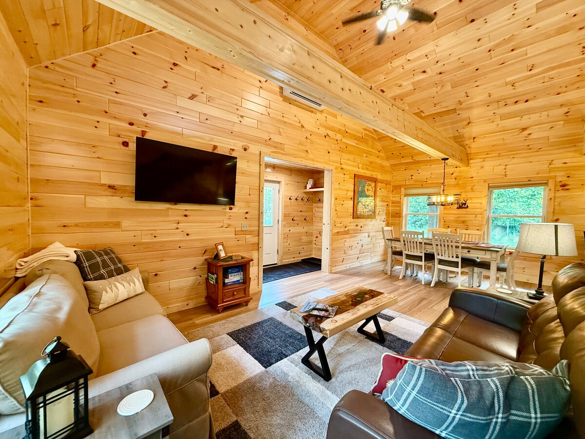 Cabin mộc mạc trên Hồ Echo với bãi biển rộng 60 feet vuông, một bến tàu để câu cá và một xích đu để thư giãn. Tận hưởng bình minh, sau đó tận hưởng phần còn lại của ngày trên bãi biển với một quán bar tiki được che chắn trong tủ lạnh và vỉ nướng ga trên mặt nước. Cabin có ba phòng ngủ với giường queen, gác xép có giường California king và giường đôi. Loft cũng có máy tính và khu vực dành cho trẻ em. Hai phòng tắm đầy đủ, khu vực ăn uống bên ngoài và một phòng được sàng lọc ở tầng dưới với tủ lạnh, quạt trần và võng để thư giãn.