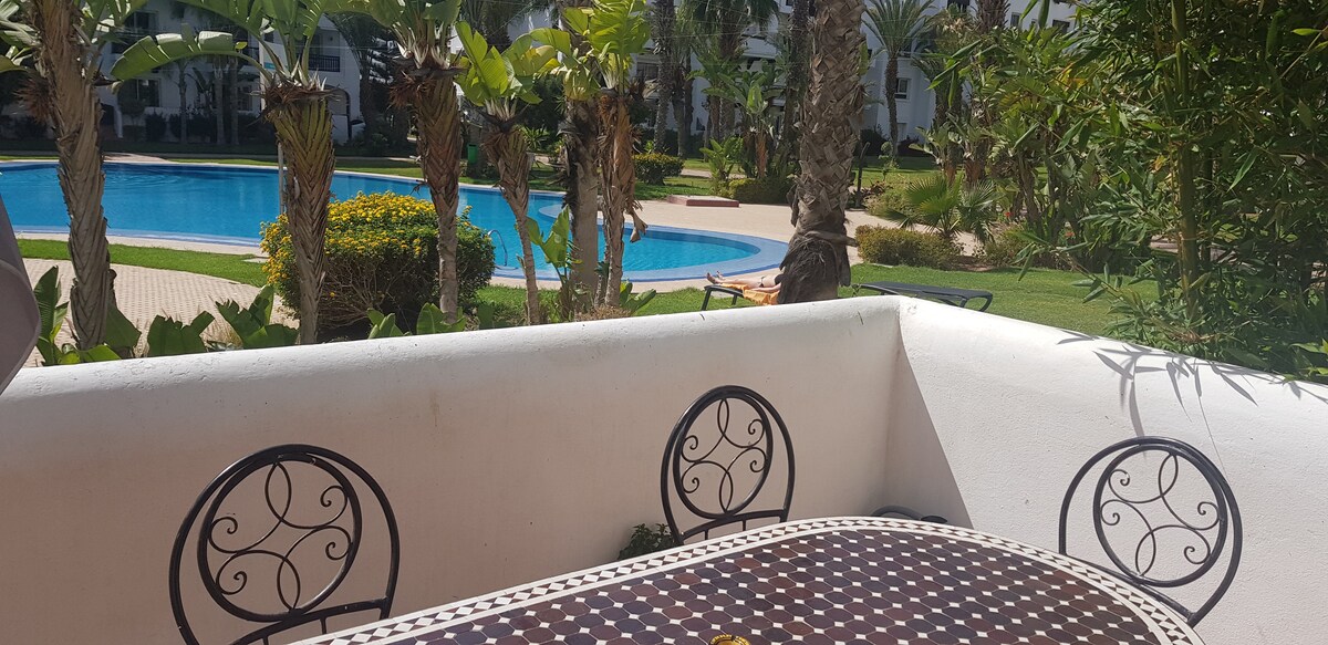 Căn hộ cao cấp ở Marina Agadir được trang bị đầy đủ tiện nghi, được trang bị đầy đủ tiện nghi. - 1 PHÒNG NGỦ dành cho PHỤ HUYNH + PHÒNG THAY ĐỒ + phòng TẮM (bồn tắm) +lôgia. - 1 PHÒNG DỰ PHÒNG +Phòng tắm (vòi sen) - 1 PHÒNG KHÁCH 2 GHẾ SOFA + TV + wifi miễn phí + ban công - 1 KHU VỰC ăn uống, 6 ghế (lý tưởng cho công việc từ xa) - 1 BẾP ĐẦY ĐỦ The Residence nằm bên bờ biển, được bao quanh bởi những khu vườn tươi tốt; hồ bơi đẹp; gần bãi biển; corniche; cảng giải trí; cửa hàng...v.v.