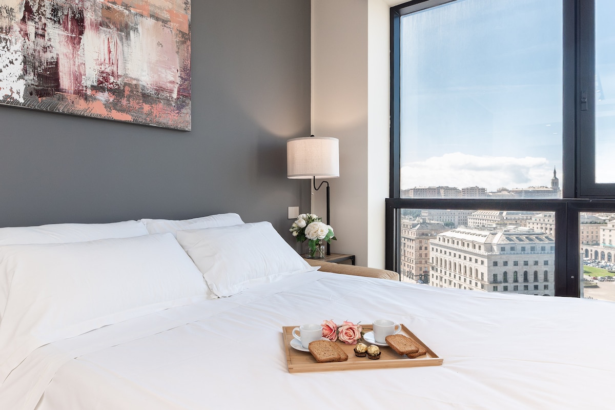Căn hộ 95 m2 2 phòng ngủ nhìn ra biển và thành phố ở tầng 17 (thang máy) phía sau quảng trường chính Piazza De Ferrari và 11 phút đi bộ đến thủy cung. Phòng khách với 2 giường sofa và kitrchen có bếp, lò vi sóng, máy rửa chén, máy giặt. 2 phòng ngủ với giường cỡ queen và TV lớn với Netflix.. Phòng tắm có vòi sen - Wifi nhanh miễn phí - Bãi đỗ xe ngầm an toàn bên cạnh 22 Euro/ngày. Siêu thị ở tầng dưới. CITRA: 010025-LT-1771