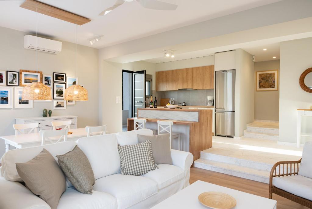 Nếu bạn đã xem "Glass Onion: Tất cả các loại dao ra", đó là biệt thự trong phần giới thiệu của bộ phim (từ 13:00-18:00). Vị trí độc đáo bên bờ biển gần mọi thứ: Khách sạn Poseidonion mang tính biểu tượng, trung tâm đảo, hai rạp chiếu phim ngoài trời, chợ, nhà hàng, quán cà phê, quán bar, bãi biển,mọi thứ trong khoảng cách đi bộ và có tầm nhìn đẹp nhất ra biển và hoàng hôn tuyệt đẹp. 4 phòng ngủ, ngủ 8-10 người, tất cả đều có phòng tắm riêng, nhiều sân thượng ngoài trời, nhà bếp sáng sủa rộng rãi.