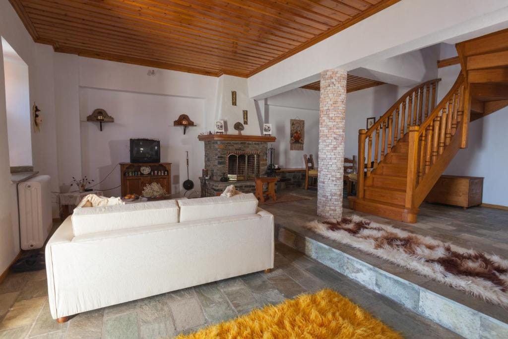 Nhà hai tầng có gác lửng, 108 m² xây bằng đá và gỗ tại ngôi làng đầu tiên của Pelion, Agria. Cách bãi biển 80 m, cách trung tâm Volos 7 km và cách trung tâm trượt tuyết Pelion 19 km. BBQ đá bên ngoài cho những ngày nắng và lò sưởi bên trong cho những ngày lạnh.