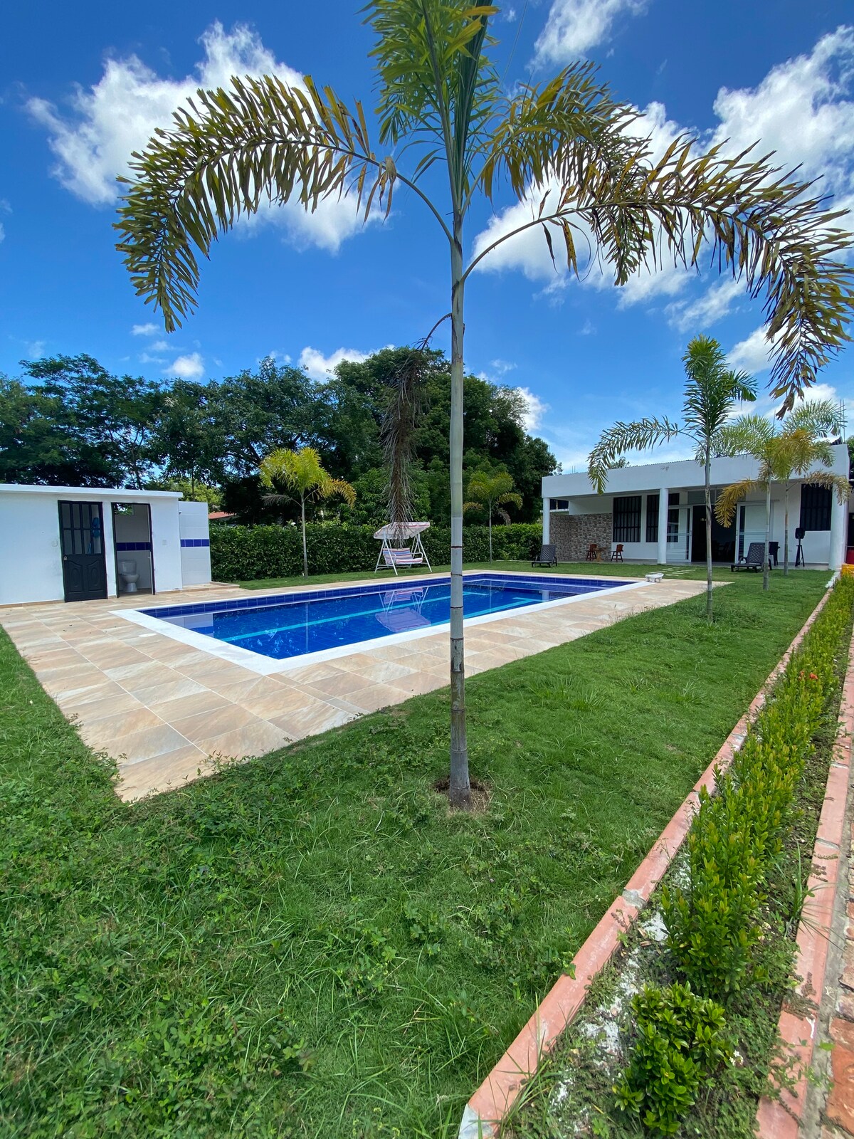 Ngôi nhà đẹp với hồ bơi riêng trong thời tiết ấm áp và được bao quanh bởi thiên nhiên. Chỉ cách Bogotá 2,5 giờ. Nó có thể chứa 15 người. 3 phòng được trang bị bộ giường, 3 phòng tắm, phòng khách với giường sofa, nhà bếp tích hợp được trang bị đầy đủ, tủ lạnh, truyền hình cáp, lò nướng Khu vực pisicin được trang bị bồn tắm nắng, ghế bập bênh, lòng bàn tay bóng râm và hồ bơi gia đình rộng rãi 6 x 10 siêu ấm áp. Bãi đỗ xe 5 xe Không gian cắm trại