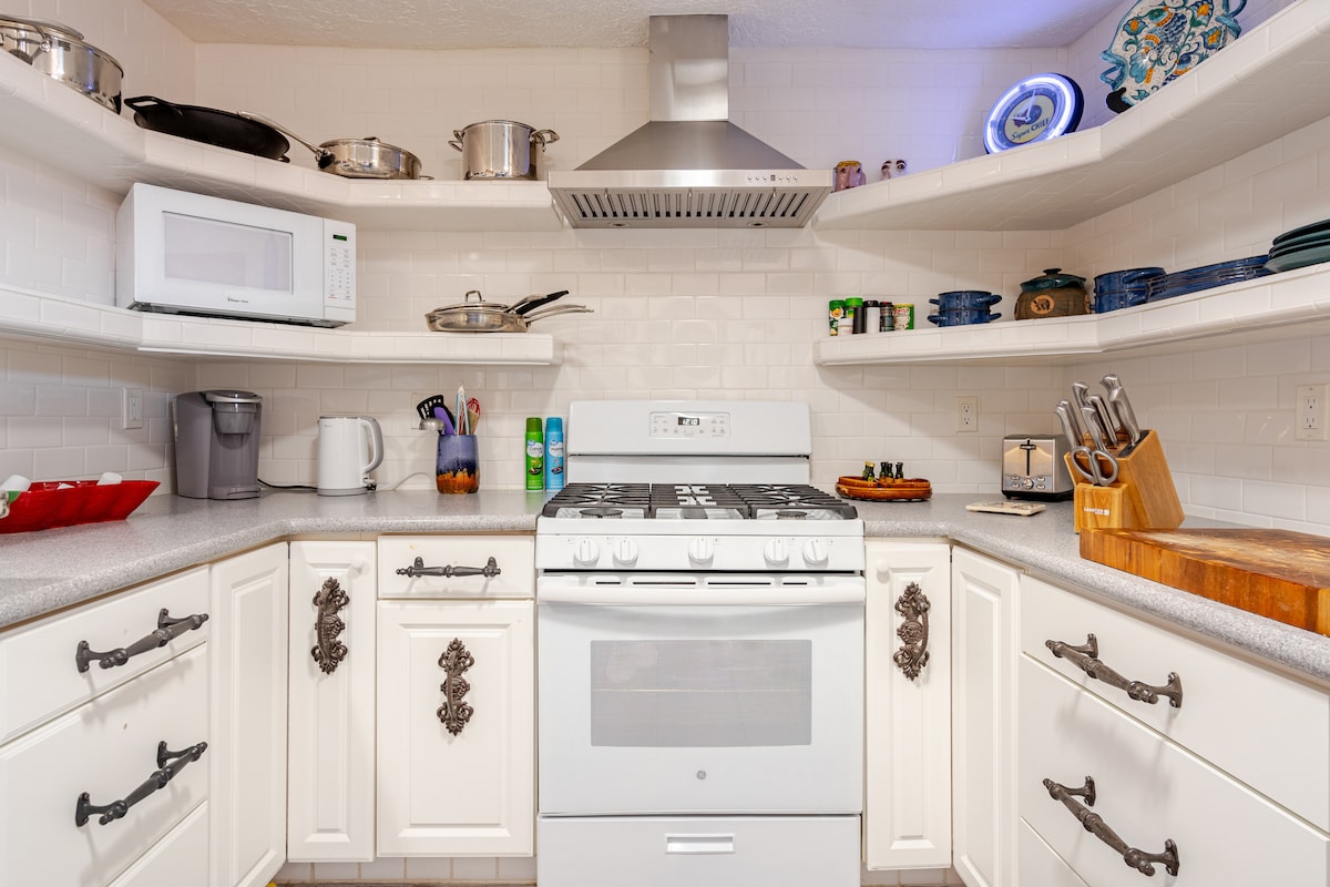 Hãy quên đi những lo lắng của bạn trong ngôi nhà ấm cúng, hai giường, hai phòng tắm ở vị trí thuận tiện cách quảng trường trung tâm thành phố chưa đầy 10 phút. Gần Meow Wolf và một số nhà hàng, cơ sở kinh doanh và mua sắm New Mexico đích thực tuyệt vời. Ngoài ra, có một gara xe hơi đơn có thể chứa một chiếc SUV cỡ trung với 2 chỗ đỗ xe bổ sung ngoài đường.