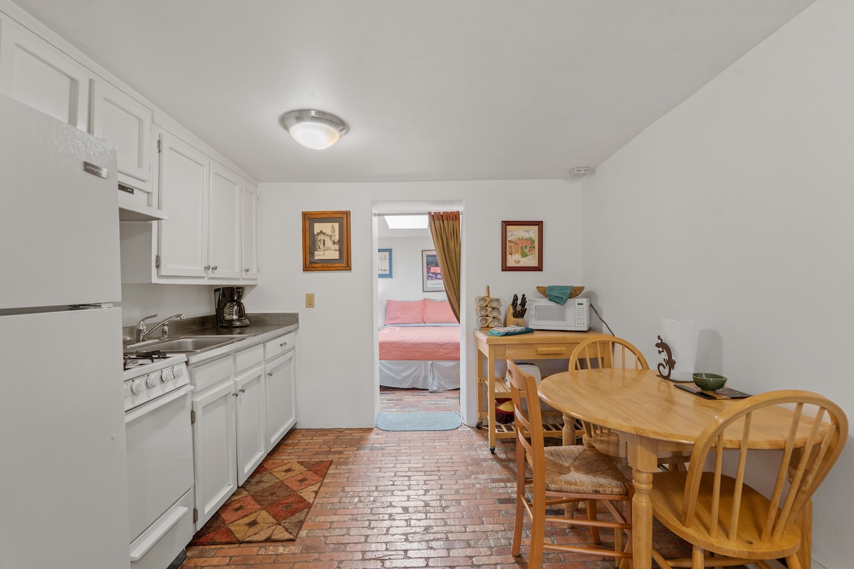 Adobe studio casita (336 sq ft) trong khu phố yên tĩnh. Giường cỡ Queen và nhà bếp đầy đủ. Sân riêng, kín hoàn toàn với sân hiên và chỗ ngồi. Một chỗ đỗ xe không nằm trên phố. Chỉ 5 phút đi ô tô (2 dặm) từ Plaza và Railyard, gần đường dành cho xe đạp và công viên chó Frank S Ortiz (138 mẫu Anh với tầm nhìn đẹp). Cách Better Day Coffee nửa dặm, xe tải thực phẩm Jamaica của Ras Rody và cửa hàng tạp hóa La Montana Co-op. Chúng tôi chào đón chó! (Tối đa 2 người)