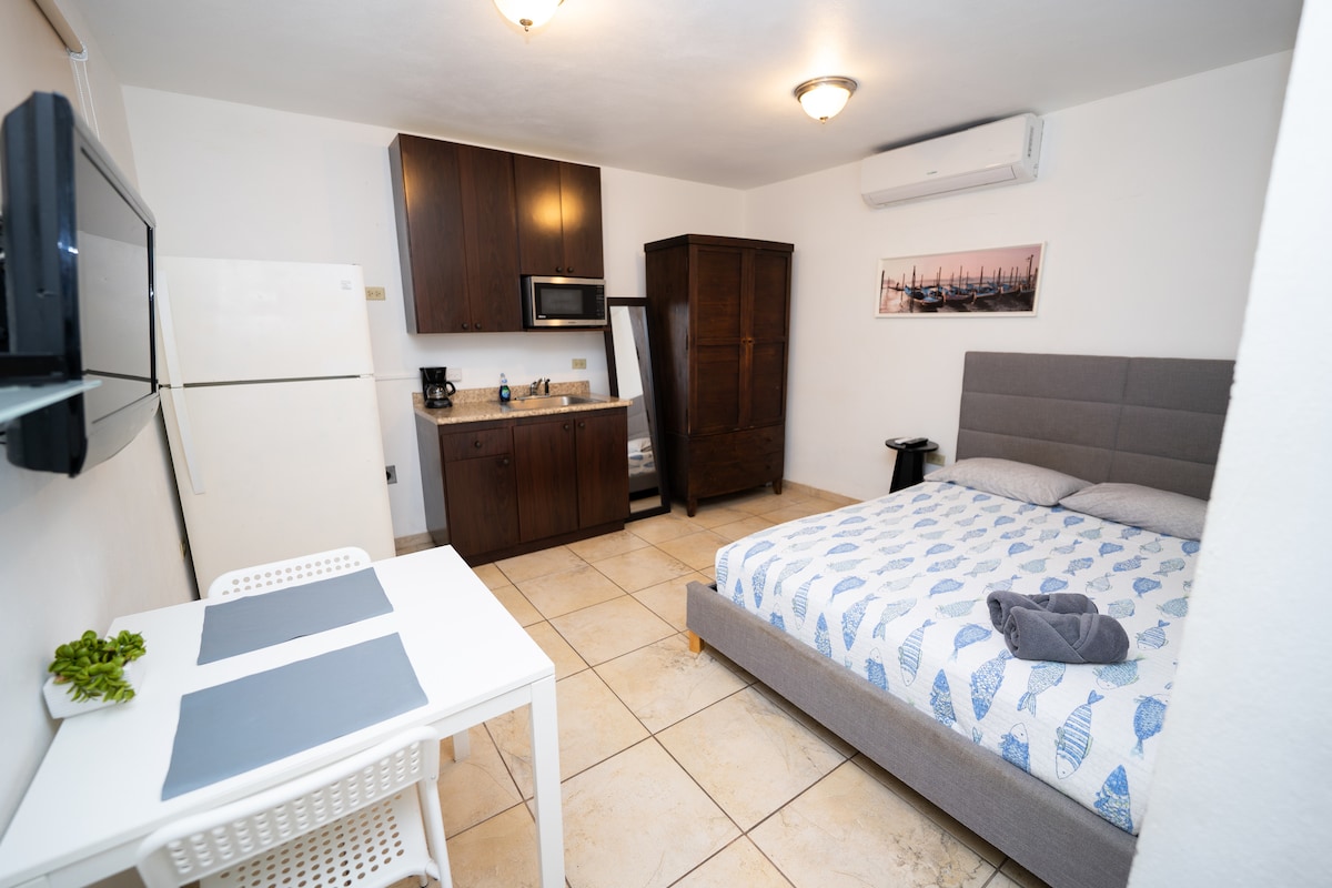 Một địa điểm độc đáo trong một ngôi nhà 80 năm tuổi được chuyển đổi thành một căn phòng ấm cúng. Với một giường queen, một không gian để thư giãn và một phòng tắm đầy đủ, những gì đã từng là một nhà bếp của một ngôi nhà phố cổ xinh đẹp bây giờ sẽ nhận được du khách từ Puerto Rico và trên toàn thế giới ở Aguadilla xinh đẹp Căn hộ được tạo ra với một không gian sử dụng thông minh, bao gồm một phòng ngủ riêng, có lối vào riêng và một phòng tắm. Ngoài ra, một chiếc bàn nhỏ để ăn uống hoặc làm việc. Đã bao gồm Wi-fi. Khách có thể tận hưởng sân hiên..