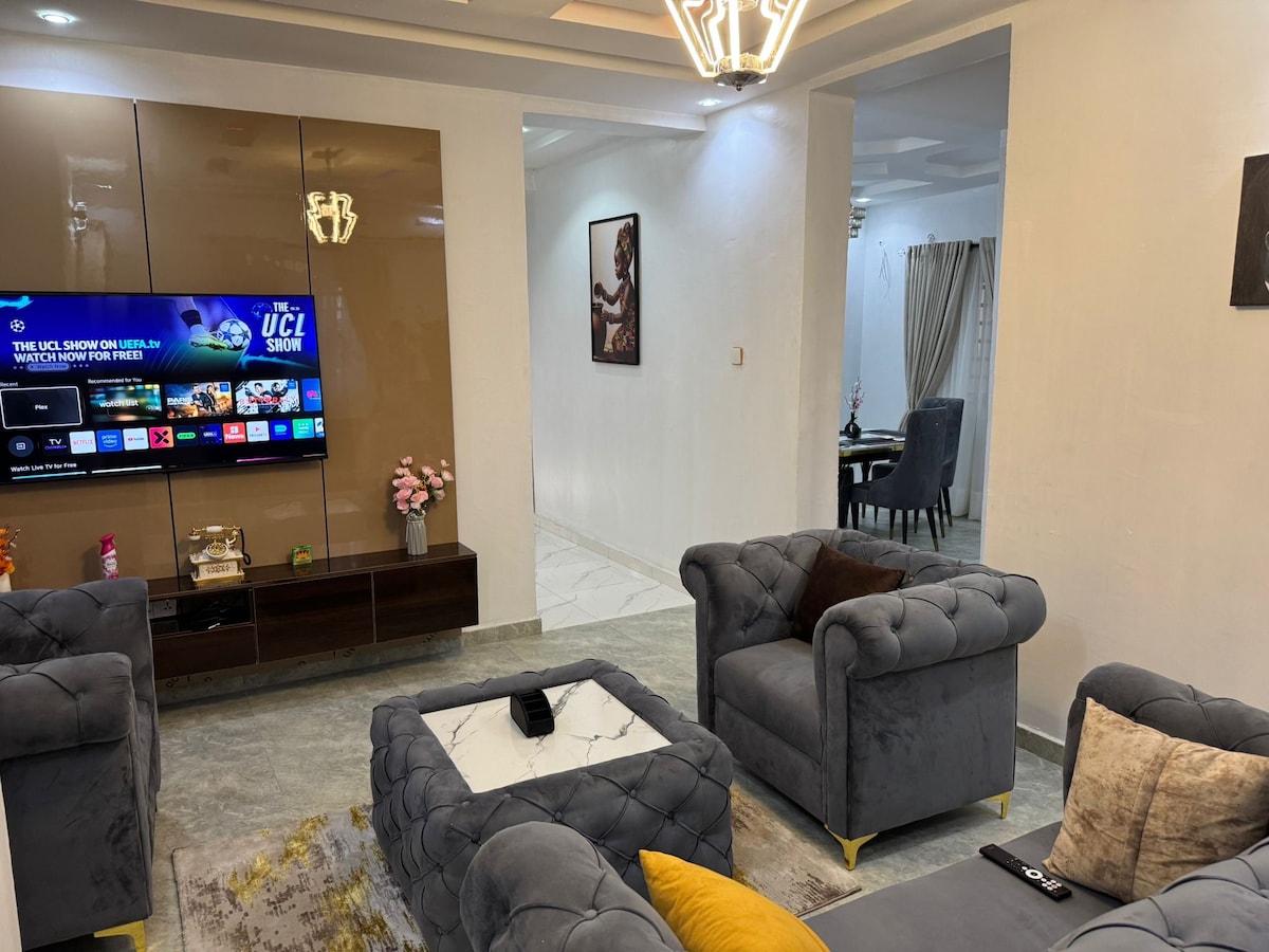 welcome to your home away from home in the heart of Ikorodu, Lagos State. This modern and fully equipped apartment offers everything you need for a stress-free stay- whether you're here for business, a family getaway, or just to unwind. This apartment gives you the perfect mix of comfort, safety and convenience. Book your stay with us today and experience glamor associated with classic essentials!