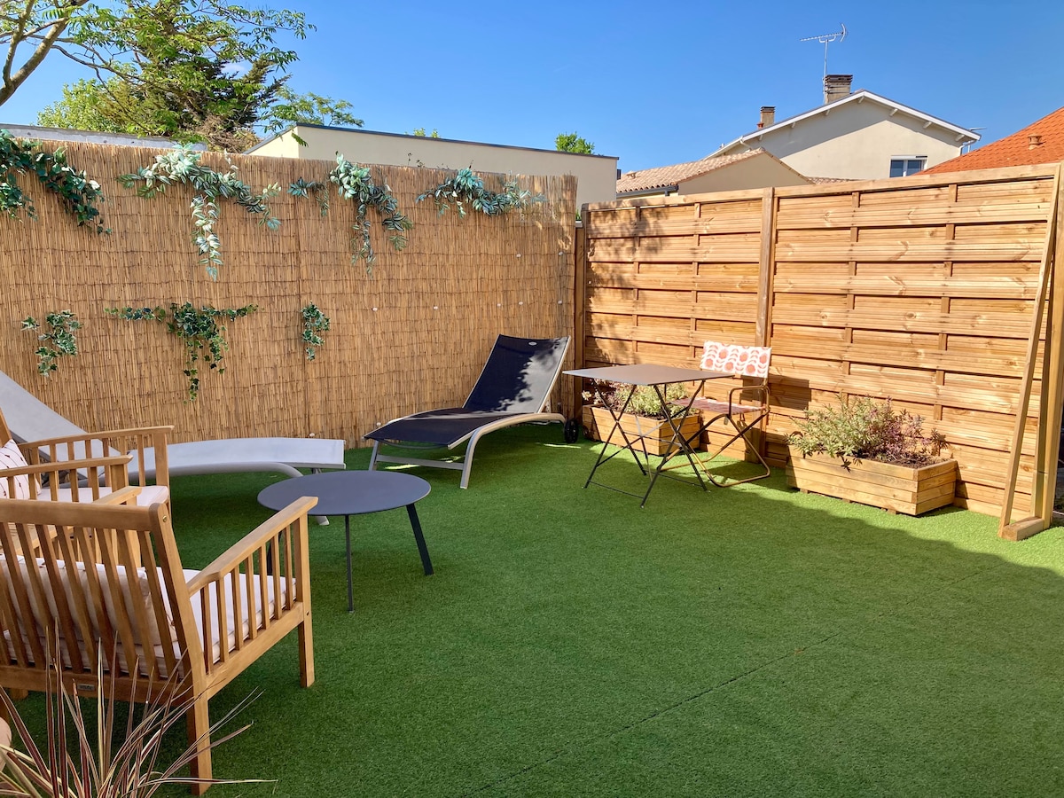 Nghỉ ngơi thư giãn ngay trung tâm Aigrefeuille-d 'Aunis: khám phá cái kén rộng 35 m² này, được cải tạo cẩn thận theo tinh thần thiết kế sạch sẽ. Ẩn mình trong một khu dân cư, ngôi nhà đảm bảo những đêm rất yên tĩnh để nạp năng lượng, làm việc từ xa hoặc tận hưởng kỳ nghỉ của bạn mà không có bất kỳ tiếng ồn ký sinh nào. Điểm khởi đầu để khám phá Charente-Maritime: La Rochelle, Rochefort, Surgères hoặc bãi biển Châtelaillon chỉ cách đó 20 phút lái xe. Rất mong sớm được đón tiếp bạn 🙂