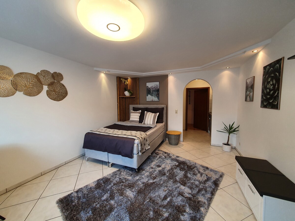 Căn hộ trung tâm, sáng sủa với khoảng 45 m² trong ngôi nhà nửa gỗ lịch sử – hoàn hảo cho các kỳ nghỉ, hội chợ thương mại và các chuyến công tác. Nhà hàng, vườn bia, tiệm bánh, hàng thịt và siêu thị chỉ cách vài bước chân. Hồ Aileswasen và Jakobsweg ngay bên cạnh ngôi nhà. Kết nối nhanh với hội chợ thương mại và sân bay Stuttgart và OUTLETCITY Metzingen. Lý tưởng cho các cặp đôi, người đi bộ đường dài, gia đình và khách đi công tác.
