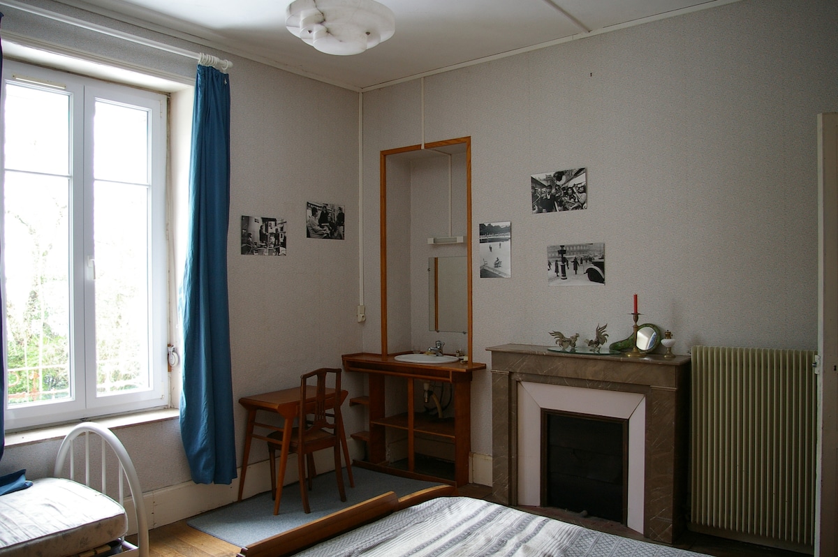 Marc và Dorothée chào đón bạn đến với chỗ nghỉ phục vụ bữa sáng của họ trong ngôi nhà rộng lớn của gia đình họ, "la Folia". Căn phòng "La Parisienne" nằm trên tầng 1. Trong 18m2, nó được trang bị một giường đôi 140*190, và một chậu rửa góc. Một giường đơn có thể được thêm vào theo yêu cầu. Nhà vệ sinh và vòi sen nằm bên ngoài phòng ngủ và có thể ra vào từ khi hạ cánh. Bạn sẽ có quyền sử dụng một phòng chung lớn và khu vực bếp nhỏ. Đã bao gồm bữa sáng trong giá.