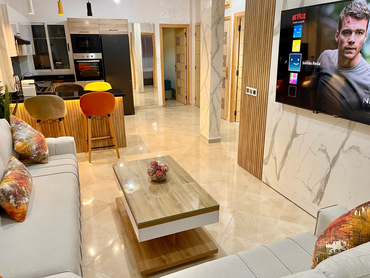 Ngôi nhà của bạn ngay trung tâm Meknes! ✨ Khám phá căn hộ xinh đẹp này, một thiên đường yên bình kết hợp giữa hiện đại và quyến rũ địa phương. Hoàn hảo cho các gia đình, cặp đôi và khách đi công tác. 🌇 Tận hưởng tầm nhìn toàn cảnh độc đáo từ ban công. 🎬 Thư giãn vào buổi tối trước TV thông minh 65 inch (Netflix, Disney+). 🔑 Tận hưởng wifi nhanh, nhà bếp đầy đủ và gara miễn phí. 📍 Vị trí tuyệt vời để khám phá mọi thứ bằng cách đi bộ. Căn hộ 🚭 không hút thuốc 100%. Nhận phòng đơn giản.