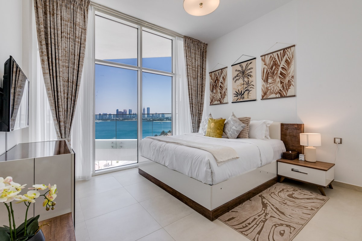Welcome to an elegant 1-bedroom apartment in Port de la Mer. Modern interior with king-size bed, full bathroom, and bright living space. Enjoy pool access from the balcony and stunning sea views. Amenities include WiFi, Smart TV, kitchen, washer-dryer, free parking. Close to La Mer Beach, Dubai Mall, Burj Khalifa, and more. Professionally managed for your comfort.