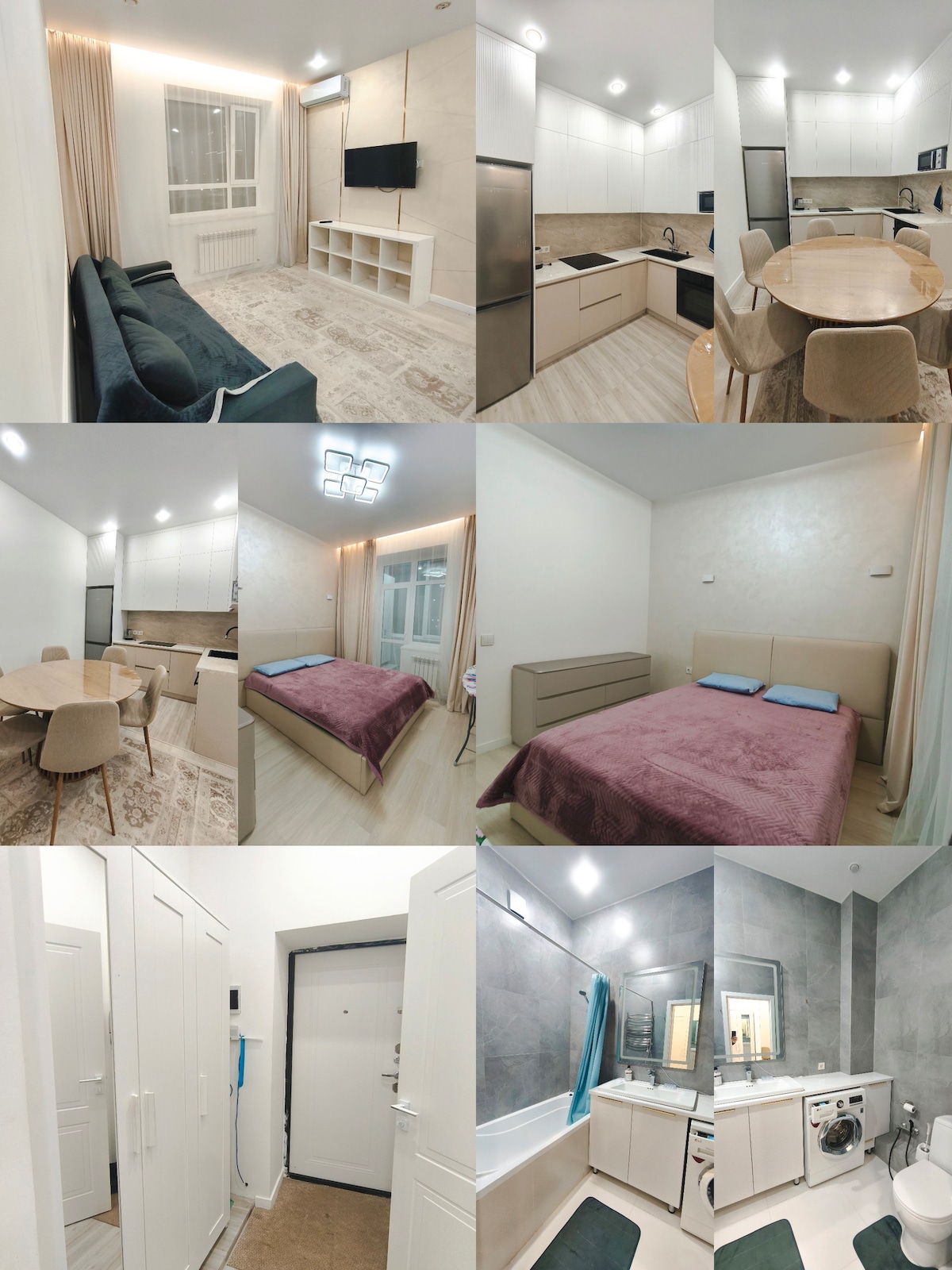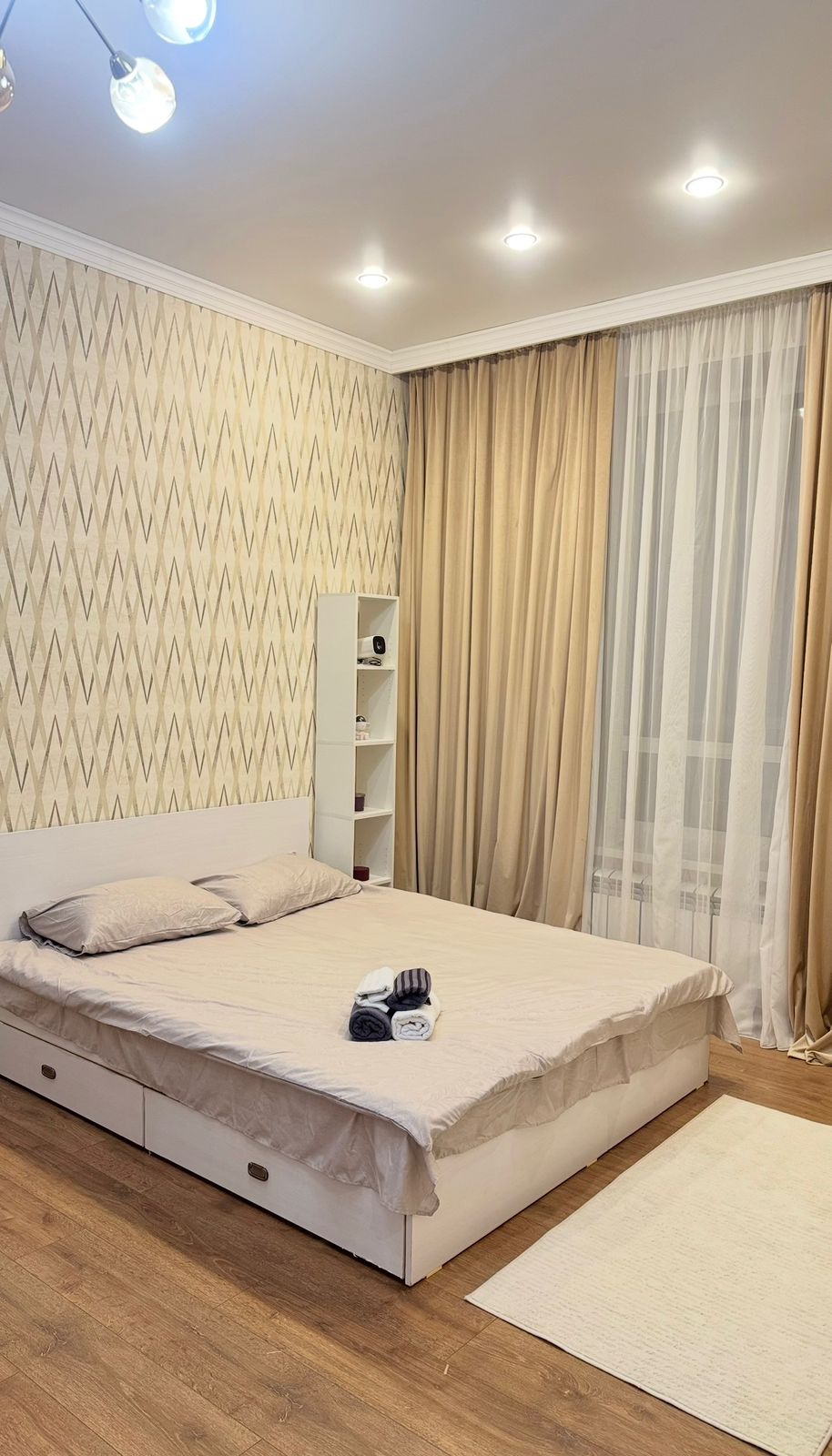 Уютная квартира от апартаментов Гранд Чемпион💕 Отличный вариант для комфортного проживания . Рядом ботанический сад , экспо, Мега, автобусные остановки. Кафе или рестораны , круглосуточный магазины, аптека. Удобства : Круглосуточно заселение ! Полностью оборудованная квартира : Wi-Fi, смарт проектор(Netflix) Ванная: полотенце, шампунь, мыло, фен! Кухня : холодильник, микроволновка, чайник, посуда! Для вашего удобства: стиральная машинка, утюг, гладильная доска!  Мы ждем вас💕