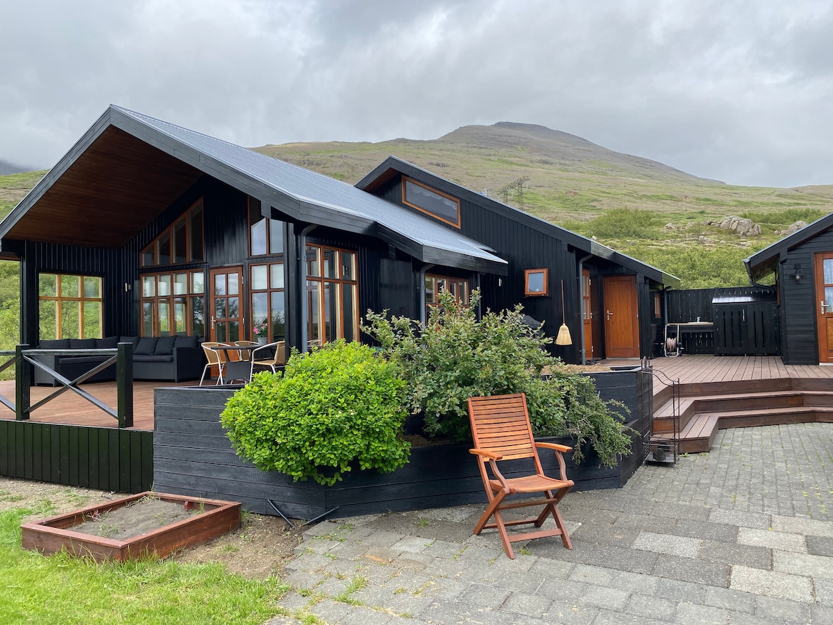 Nhà nghỉ thôn dã 1 phòng ngủ rộng 78 m2 của chúng tôi nằm cách Reykjavik 50 phút lái xe. Nhà nghỉ thôn dã sang trọng và có bồn tắm nước nóng tự nhiên ngoài trời từ đó bạn có thể tận hưởng Ánh sáng phương Bắc hoặc hoàng hôn tuyệt vời. Khu vực sinh hoạt và ban công có tầm nhìn ngoạn mục nhìn ra vịnh hẹp và những ngọn núi xung quanh. Nhà nghỉ thôn dã là một nơi tuyệt vời cho các tour du lịch trong ngày ở phía nam hoặc phía tây Iceland. Gullfoss, Geysir, Thingvellir và sông băng Snæfells đều cách đó 1-2 giờ lái xe.