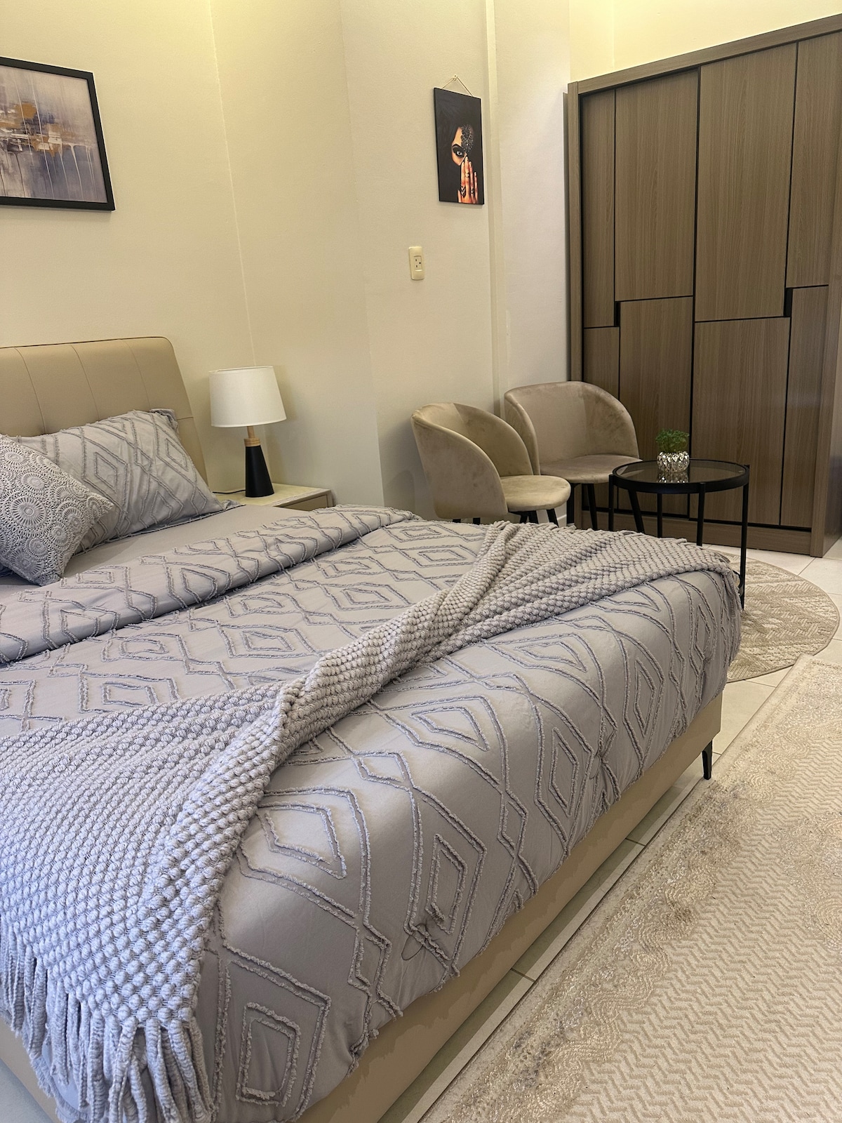 ️ Căn hộ bao gồm: • Một phòng ngủ hiện đại được trang bị nệm tốt nhất và tốt nhất và nệm y tế tuyệt vời để đảm bảo sự thoải mái hoàn hảo • Một phòng chờ theo phong cách di sản với các chi tiết hiện đại, thêm một chút sang trọng và thanh lịch • Bếp kiểu Mỹ đầy đủ tiện nghi, • Hai phòng tắm được thiết kế hiện đại • Ban công với tầm nhìn rất đặc biệt ra Hồ Shabili ☕ Quyền lợi khác: • Quán cà phê tích hợp với cà phê và nước miễn phí • Một tòa nhà gồm các tòa nhà đẹp nhất, đảm bảo cho bạn mức độ thoải mái và an toàn cao • Vị trí chiến lược: Ngay trước hồ và phía sau Grand Mall, mang đến cho bạn trải nghiệm độc đáo kết hợp sự yên tĩnh và sức sống