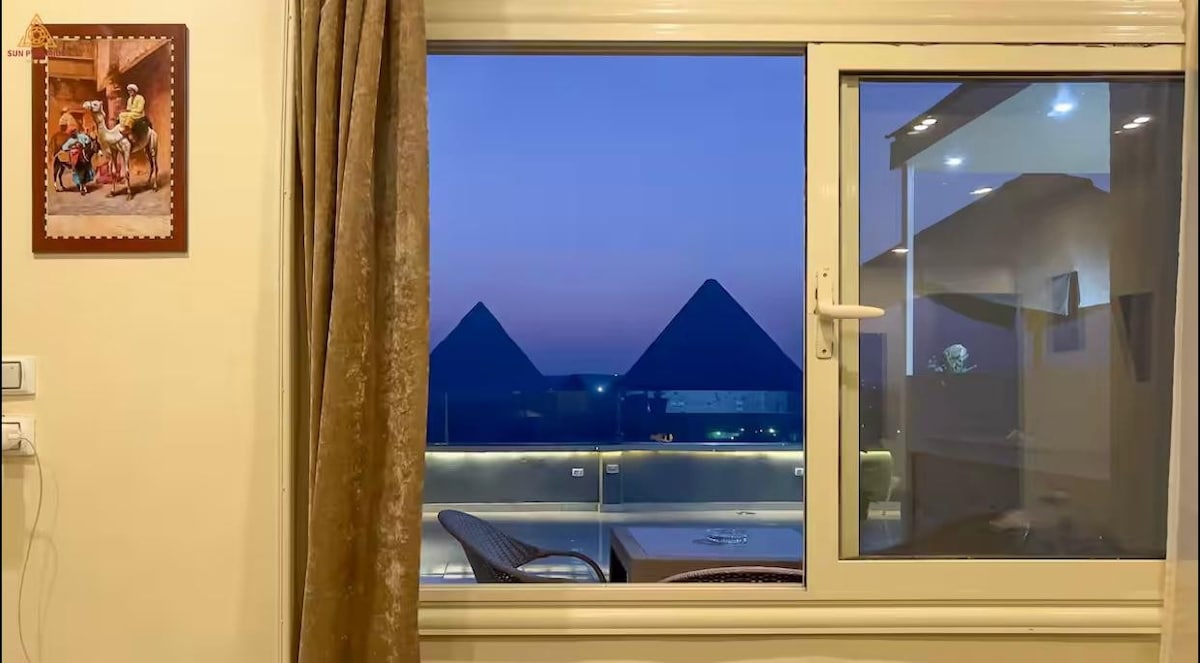 Welcome to our charming 1-bedroom in Giza, where you can enjoy spectacular views of the Great Pyramids right from your private balcony. Featuring a cozy bed and an attached bathroom, this space is perfect for relaxation after a day of exploration. Located just a 5-minute drive from the Giza Pyramids and the Grand Egyptian Museum, our apartment is also within walking distance to delightful restaurants, cafes, and supermarkets. Enjoy a complimentary breakfast on our rooftop cafe.