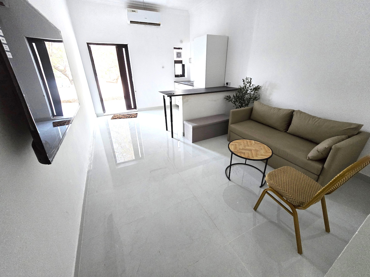 A large, fully furnished 2-bedroom apartment in central Al Ain. Fast, reliable, WiFi is available, ~500 Mbps fiber. Suitable for short or long stays and close to shops, restaurants, cafés, and malls. The unit includes a living room, two bathrooms, and a fully equipped kitchen with a fridge, stove, and washing machine. Each room has AC and the living area has a 65-inch smart TV. Clean and convenient for families and visitors, with easy check-in and fast support.
