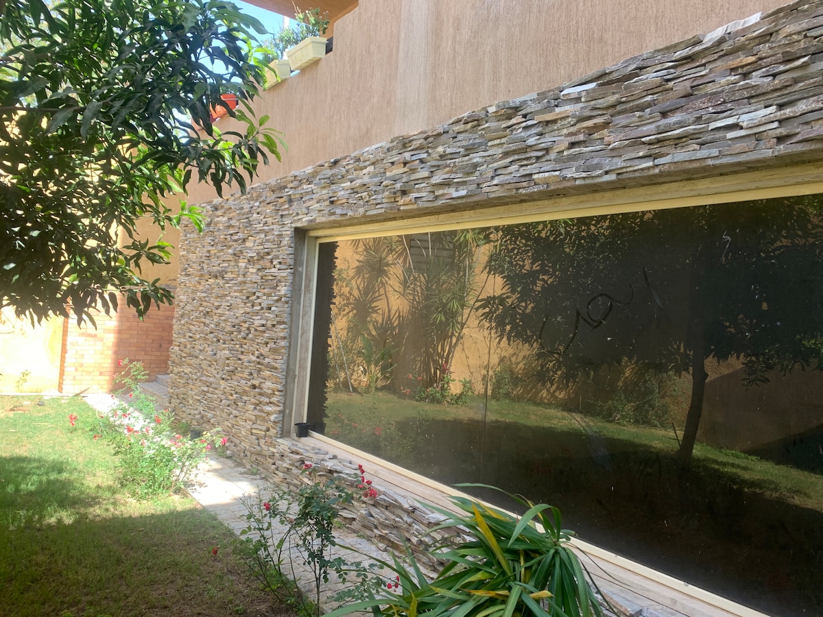 Located in a private compound 45 minutes from Cairo airport. Lovely 2 bedrooms in a domes style villa, calm and peaceful area. Villa has garden and space for private parking. Lots of space for luggage, direct access to a private garden. Transport to Cairo: Uber or Careem apps.