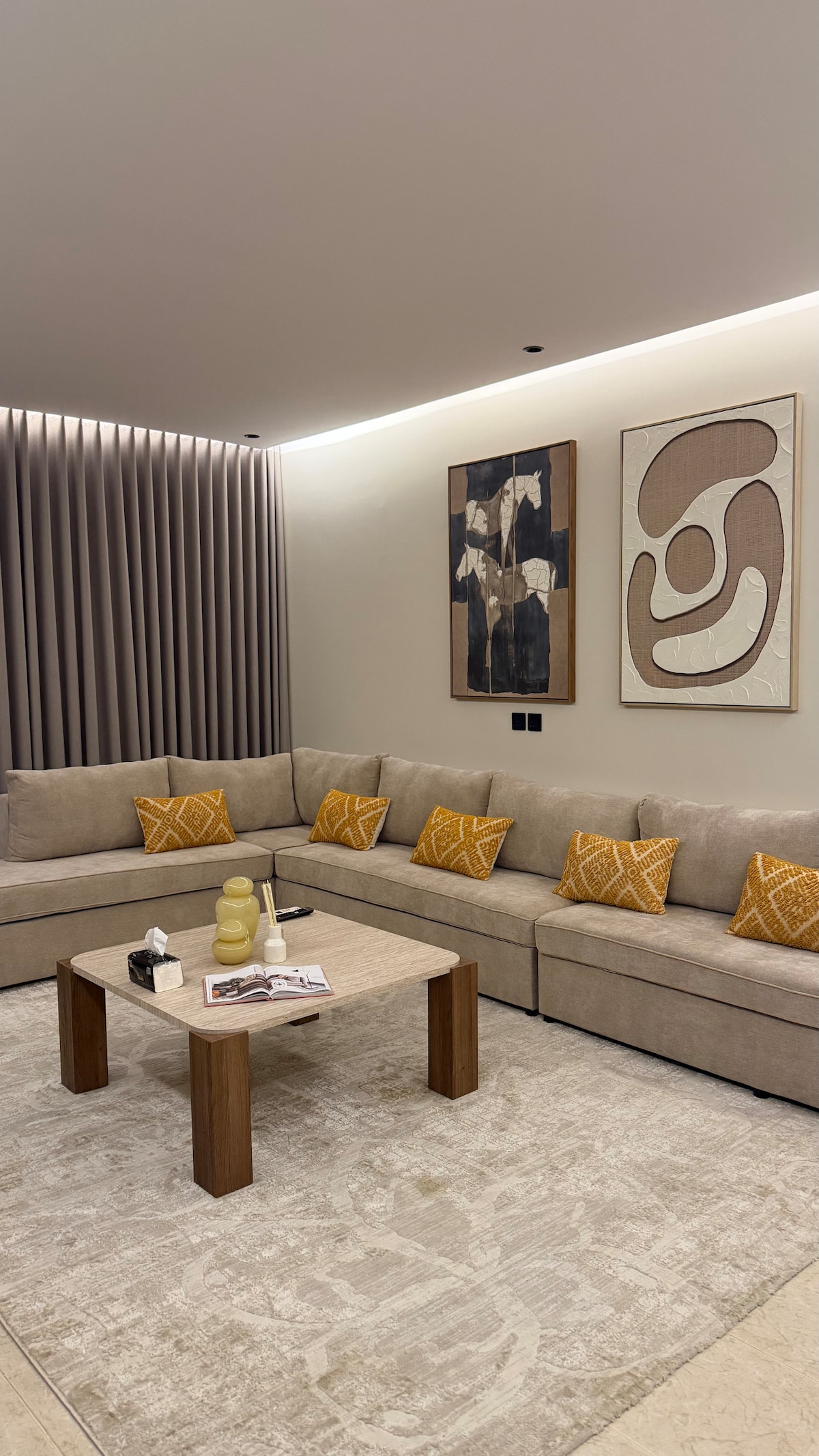 Tận hưởng một kỳ nghỉ đặc biệt tại căn hộ sang trọng này, kết hợp nét hiện đại và bản sắc văn hóa của vùng Qassim. Được thiết kế cẩn thận để mang đến cho bạn cảm giác ấm áp và thân thuộc, với các chi tiết trang trí lấy cảm hứng từ màu sắc thanh lịch và hình thức di sản, pha trộn với các điểm nhấn khách sạn thanh lịch. Căn hộ có 3 phòng ngủ phong cách và thoải mái, một nhà bếp được trang bị đầy đủ tất cả các dụng cụ và thiết bị cần thiết để chuẩn bị bữa ăn của bạn một cách thoải mái, cũng như một phòng khách cao cấp với tinh thần sang trọng và ba phòng tắm hiện đại với lớp hoàn thiện thanh lịch mang lại sự thoải mái và riêng tư tối đa