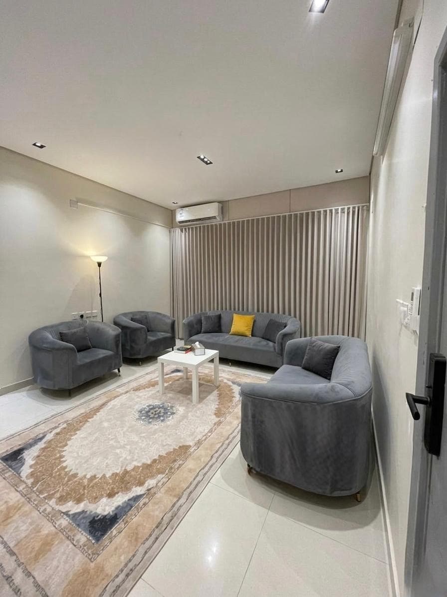 Căn hộ cho thời gian lưu trú thoải mái và chuyến công tác Nội dung : 2 phòng ngủ + giường trẻ sơ sinh Sảnh chờ màu xám thanh lịch Phiên mặt đất Bếp tích hợp Phòng tắm Fringe và máy giặt Toomatic Văn phòng Lao động Điều hòa nhiệt độ (nóng/lạnh) —————— Wifi miễn phí Có cửa hàng tạp hóa và đồ giặt ủi trong cùng một tòa nhà Một vị trí đặc biệt ở giữa thành phố 🌃 2 phút🚶♂️: Nhà hàng Sultan cho Burger và Shawarma 5 phút🚗: Phố Al-Bukhari (Cuvies & Nhà hàng ) 6 phút🚗: Đường Uthman Bin Affan (Kovites và Nhà hàng ) 12 phút🚗: Bệnh viện chuyên khoa King Fahd 10 phút: Bệnh viện Al Habib