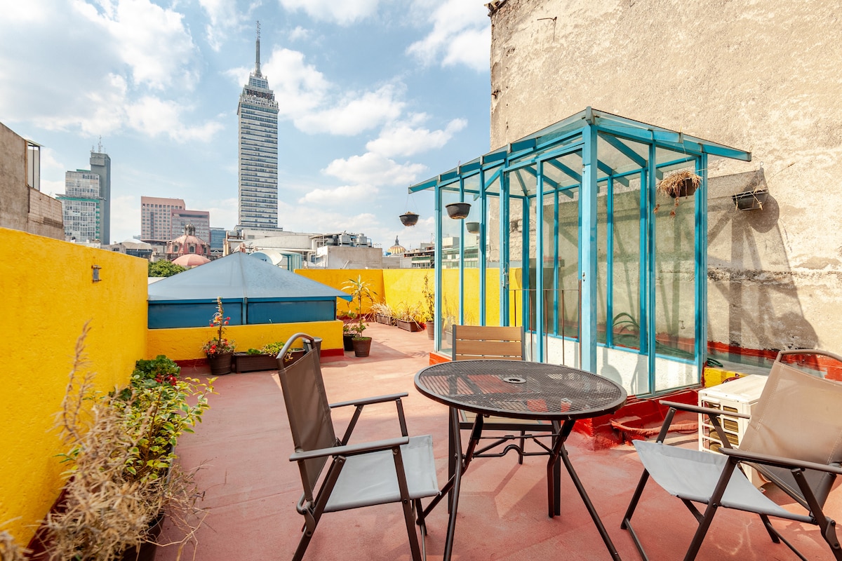Gác lửng quyến rũ với sân thượng riêng gần Zocalo