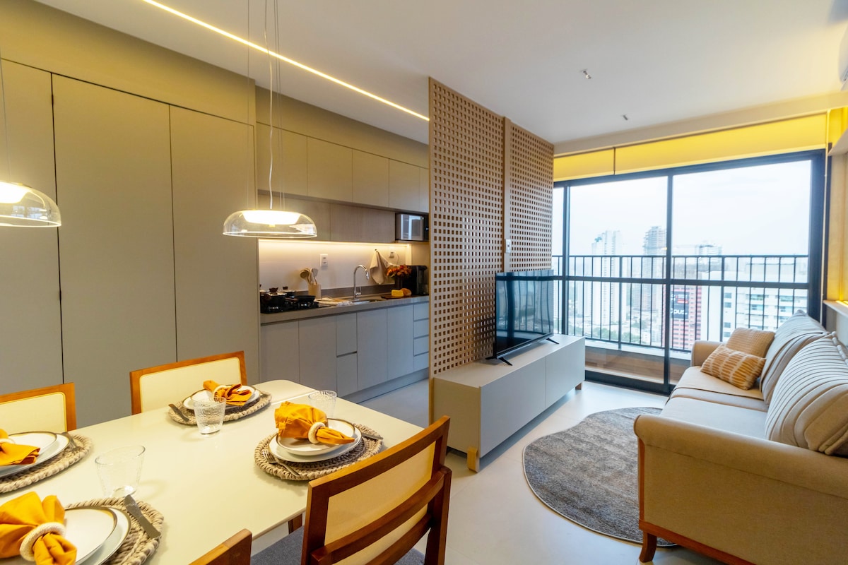 Căn hộ đầy đủ, cạnh Trung tâm thương mại Flamboyant. Ở tại khu vực cao quý nhất của Goiania, gần Công viên Flamboyant. Tận hưởng những điều tuyệt vời nhất của thành phố có thể cung cấp bằng cách đi bộ! Vị trí tốt nhất trong thành phố! Nơi đây có thể dễ dàng tiếp cận các nhà hàng, bữa ăn, cuộc sống về đêm và các hoạt động gia đình hoặc kinh doanh. Tuyệt vời cho tất cả các loại khách du lịch!!!