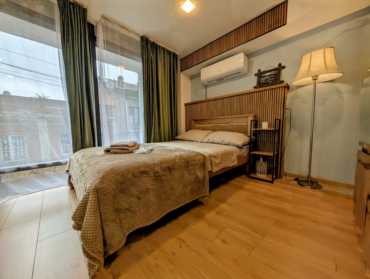 Đây là một căn hộ được cải tạo thoải mái với gạch lộ thiên mang lại cảm giác Tbilisi đích thực. Studio này có phòng tắm trong suốt với bồn tắm hiện đại, giường cỡ king, ghế sofa Chesterfield, v.v. Chỗ ở phù hợp với 2 người và nằm ở trung tâm trên một con phố đi bộ lịch sử. Internet WIFI tốc độ cao và IPTV (intl. Các kênh) được cung cấp miễn phí. Căn hộ cũng có vị trí thuận tiện để di chuyển: Metro Marjanishvili & bến xe buýt cách đó một quãng đi bộ và đưa bạn đến bất cứ nơi nào ở Tbilisi trong thời gian ngắn.
