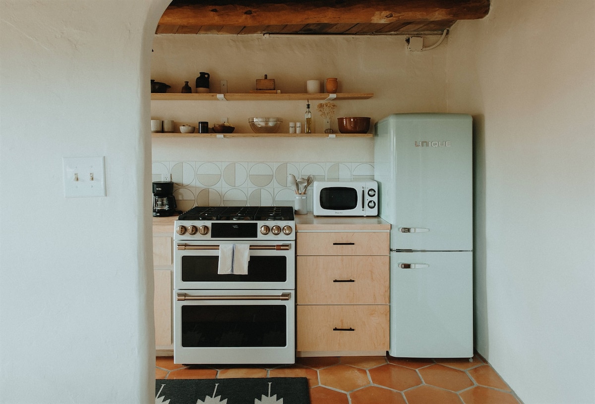 Studio trên lầu sang trọng và yên bình được tu sửa hoàn toàn với ban công riêng, tác phẩm nghệ thuật địa phương, giường bọt nhớ king được sơn tùy chỉnh, nhà bếp và phòng tắm thiết kế, góc ăn uống trong vườn xương rồng, ghế xích đu và các chi tiết lịch sử độc đáo ở phía tây nam. Tận hưởng bồn tắm nước nóng (quanh năm), hồ bơi cao bồi (mở cửa từ tháng 5 đến tháng 9), hố lửa, khu vực phòng chờ và khu vườn tại chỗ ở The Desert Compass. XIN LƯU Ý TRƯỚC KHI ĐẶT PHÒNG (chúng tôi muốn đặt kỳ vọng rõ ràng để đảm bảo rằng khách của chúng tôi có trải nghiệm tốt nhất có thể!) *