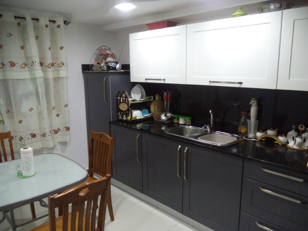 Ngôi nhà này, nép mình trong một khung cảnh xanh nhỏ, mang đến một kỳ nghỉ thư giãn cho cả gia đình. Nó nằm trong khu dân cư H24 được bảo vệ và bảo vệ. Một thiên đường nhỏ thực sự yên bình. Gần (1/4 giờ đi bộ) đến ga tàu điện ngầm Ain Naadja và cách sân bay một quãng đi bộ. Đảm bảo một kỳ nghỉ yên tĩnh tránh xa sự hối hả và nhộn nhịp của thành phố và chỉ 25 phút đi tàu điện ngầm từ trung tâm Algiers. 3 phòng, nhà bếp, wc, phòng tắm. Máy giặt, tủ lạnh, gas, hệ thống sưởi, điều hòa không khí.