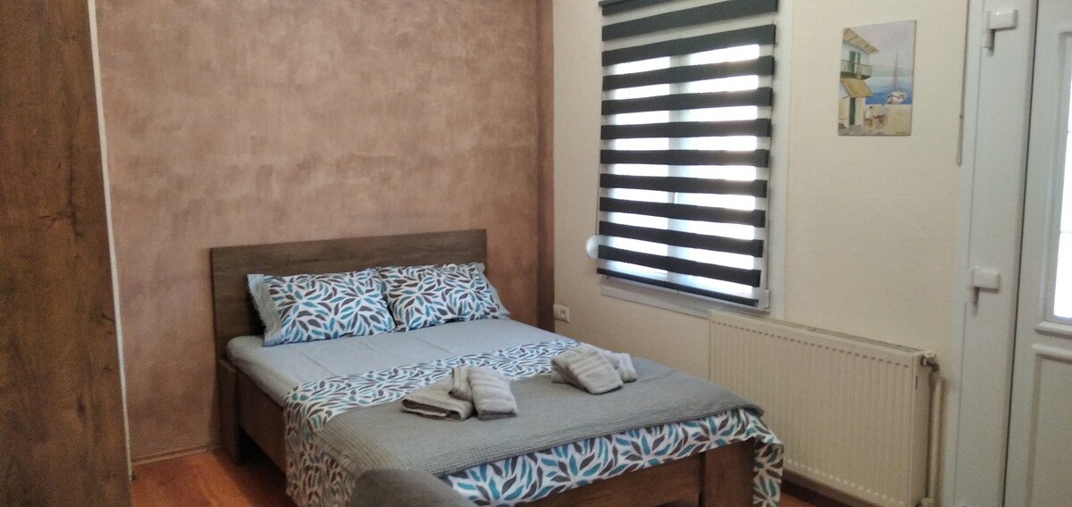 Its a modern renovated apartment, fully equipped, with brand new furniture as well as kitchen appliances, waiting for kind guests. Also, It has a small back yard where you can relax and enjoy your coffee and maybe a cigarette among the plants. The neighbourhood is very quite and it literally 5 minute walk to center. You can find some stores nearby such as food stores, coffee house, bakery, patisserie and tavern. The parking is public, safe and free just in front of the apartment.