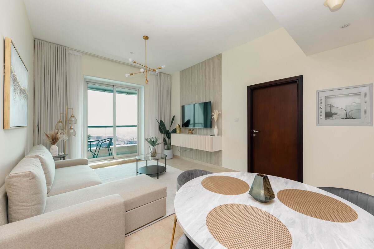 🌇 Khám phá khung cảnh tuyệt đẹp và sự thoải mái yên bình trong căn hộ 2 phòng ngủ của chúng tôi gần JLT Metro 🚆. Tận hưởng các tiện nghi hiện đại, ánh sáng tự ☀️nhiên và tầm nhìn ra đường chân trời🏙️. Hoàn hảo cho các cặp đôi hoặc chuyên gia tìm kiếm phong cách và sự dễ dàng. Khám phá Marina, JBR Beach, Bluewaters & The Palm🌴. Đơn giản, rộng rãi và được trang bị đầy đủ 🛏️- chỉ cần chuyển đến và thư giãn. Kỳ ở Dubai khó quên của bạn bắt đầu từ đây! ✨