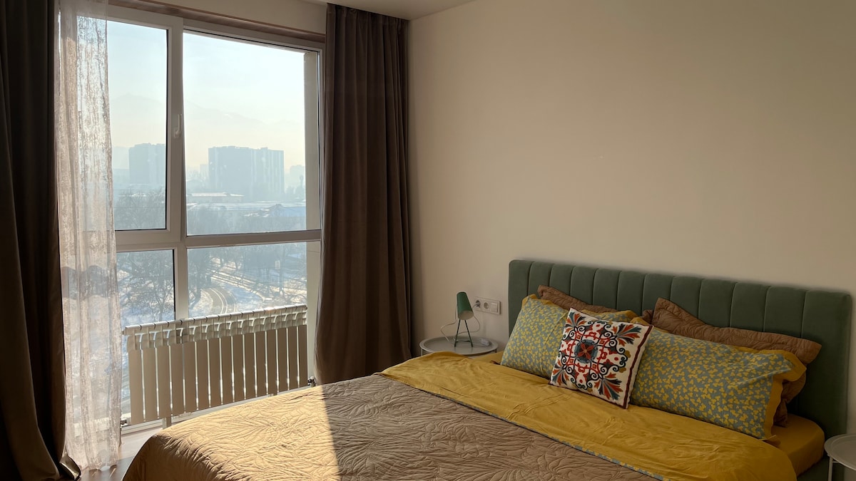 Thư giãn trong căn hộ ấm cúng, sáng sủa của chúng tôi gần Mega Rozybakiev, với tầm nhìn tuyệt đẹp ra Kok-Tobe và những ngọn núi. Nằm trong một khu dân cư mới với sân chơi, cửa hàng và quán cà phê, nó có mọi thứ bạn cần cho một kỳ nghỉ thoải mái. Tôi luôn sẵn sàng hỗ trợ trong chuyến thăm của bạn. Chúng tôi rất mong được chào đón bạn!