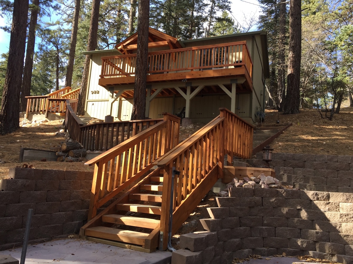 Hai phòng ngủ ấm cúng, hiện đại, hoàn hảo cho kỳ nghỉ trên núi của bạn ngay trung tâm Big Bear. Hoàn hảo cho các cặp vợ chồng hoặc một gia đình nhỏ. Twin Pines có mọi thứ cần thiết cho một khoảng thời gian tuyệt vời bao gồm: lò sưởi, cáp, TV thông minh, WiFi miễn phí, cáp và phòng khách mở/nhà bếp đầy đủ tiện nghi. Nằm ở trung tâm và trong khoảng cách đi bộ đến Nhà máy bia Big Bear Mountain, một chuyến đi nhanh đến hồ, Alpine Slide, cách làng, nhà hàng, dịch vụ cho thuê xe đạp, cửa hàng đồ cổ và nhiều thứ khác chưa đầy một dặm. Thú cưng có giá 50 USD mỗi con.