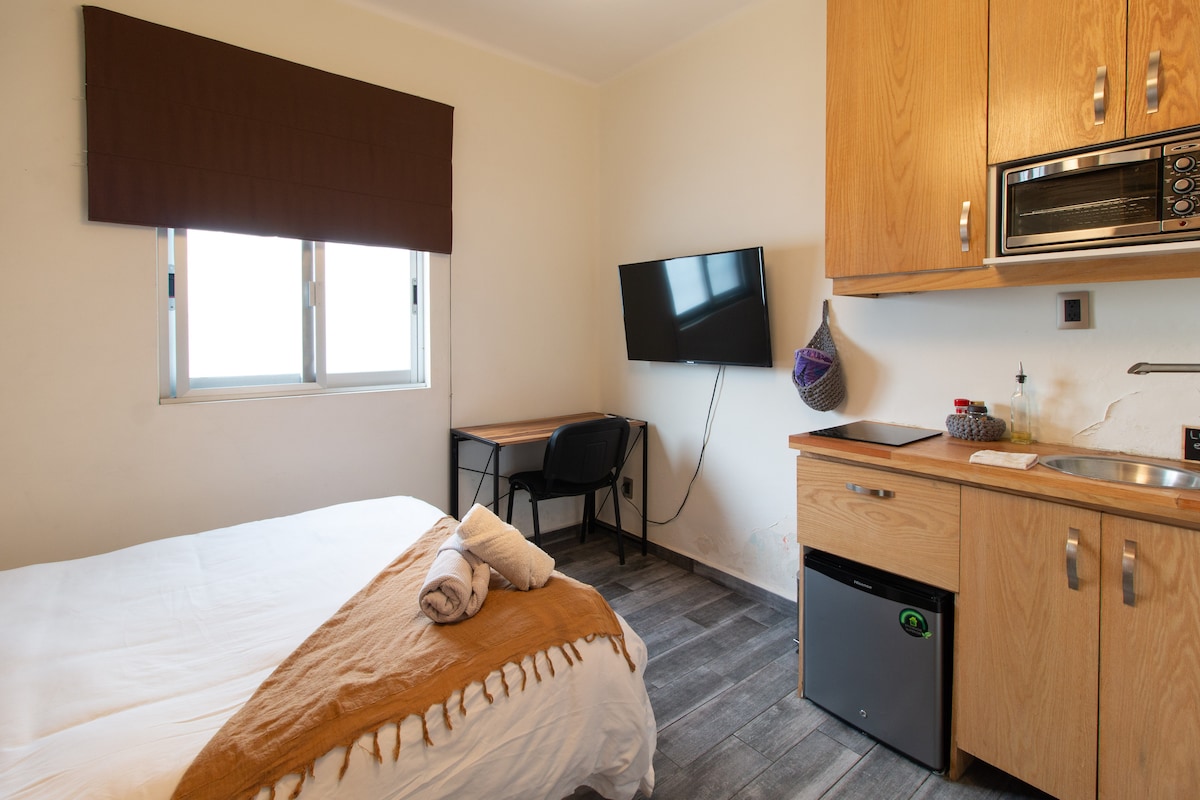 Studio này có mọi thứ bạn cần để chia sẻ những khoảnh khắc và giai thoại tốt, nó được thiết kế thông minh, với không gian thích hợp để ngủ thoải mái vào ban đêm và vào ban ngày tận hưởng chậm hơn bên cạnh giường gấp của bạn. Nó có một bếp nhỏ với lò nướng cảm ứng, và một phòng tắm đầy đủ và độc lập, nơi bạn sẽ không bỏ lỡ bất cứ điều gì. Nó hoàn hảo cho các cặp vợ chồng, du khách đi một mình hoặc các chuyên gia y tế đang tìm kiếm một kỳ nghỉ thoải mái, thuận tiện gần Bệnh viện Siglo XXI