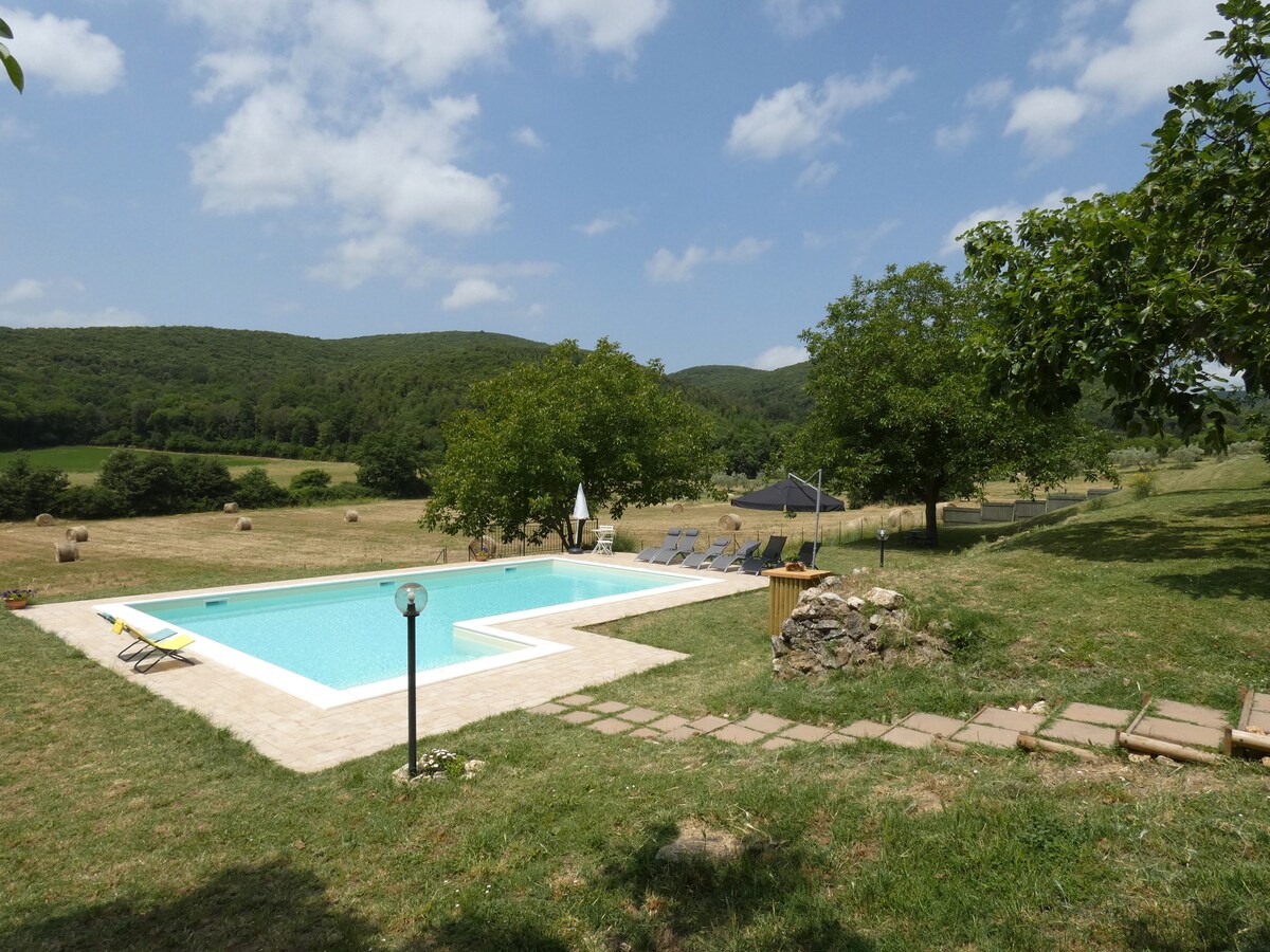 Cửa sổ thiên đường khiến bạn nghẹt thở. Là khách duy nhất của chúng tôi, bạn sẽ được bao quanh bởi khung cảnh vô tận, sự yên tĩnh vô tận, âm thanh của tiếng chim hót và tiếng hươu kêu. Xuống thung lũng và trên đường đi bộ, bạn có thể thấy những con cáo chồn sương và lợn rừng. Thu thập lông nhím. Hít thở! Nằm giữa Rome và Florence. Gần Siena, Val d'Orcia và vô số suối nước nóng. Một thiên đường riêng được bao quanh bởi ẩm thực thần thánh và đồ trang sức cổ xưa trên đỉnh đồi như Montepulciano và Montalcino với các loại rượu vang tuyệt vời.