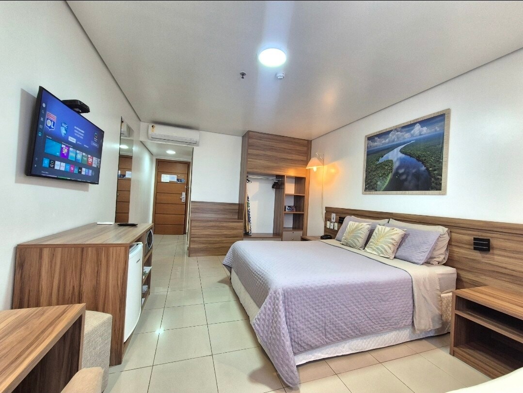 Căn hộ hiện đại tại Intercity Manaus, hoàn hảo để giải trí hoặc kinh doanh. Nó chứa tối đa 3 người với sự thoải mái, Wi-Fi, minibar và bộ đồ giường. Toàn cảnh thành phố và lối ra hồ bơi, phòng tập thể dục và nhà hàng. Vị trí chiến lược: gần Khu mua sắm Manauara, Khu công nghiệp và trung tâm thành phố. Chúng tôi cung cấp dịch vụ vệ sinh miễn phí 5 ngày một lần. Chúng tôi đến để trải nghiệm ở lại với tư cách là một cư dân, với cấu trúc khách sạn!